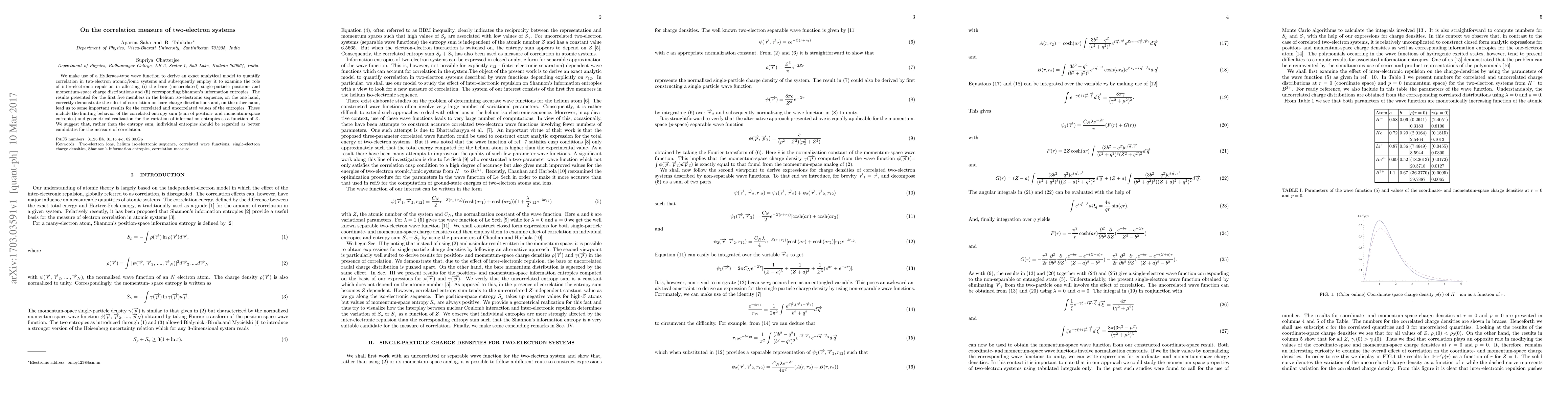 We make use of a Hylleraas-type wave function to derive an exact analytical model to quantify correlation in two-electron atomic/ionic systems and subsequently employ it to examine the role of inter-electronic repulsion in affecting (i) the bare (uncorrelated) single-particle position- and momentum-space charge distributions and (ii) corresponding Shannon's information entropies. The results presented for the first five members in the helium iso-electronic sequence, on the one hand, correctly demonstrate the effect of correlation on bare charge distributions and, on the other hand, lead us to some important results for the correlated and uncorrelated values of the entropies. These include the limiting behavior of the correlated entropy sum (sum of position- and momentum-space entropies) and geometrical realization for the variation of information entropies as a function of Z. We suggest that, rather than the entropy sum, individual entropies should be regarded as better candidates for the measure of correlation.