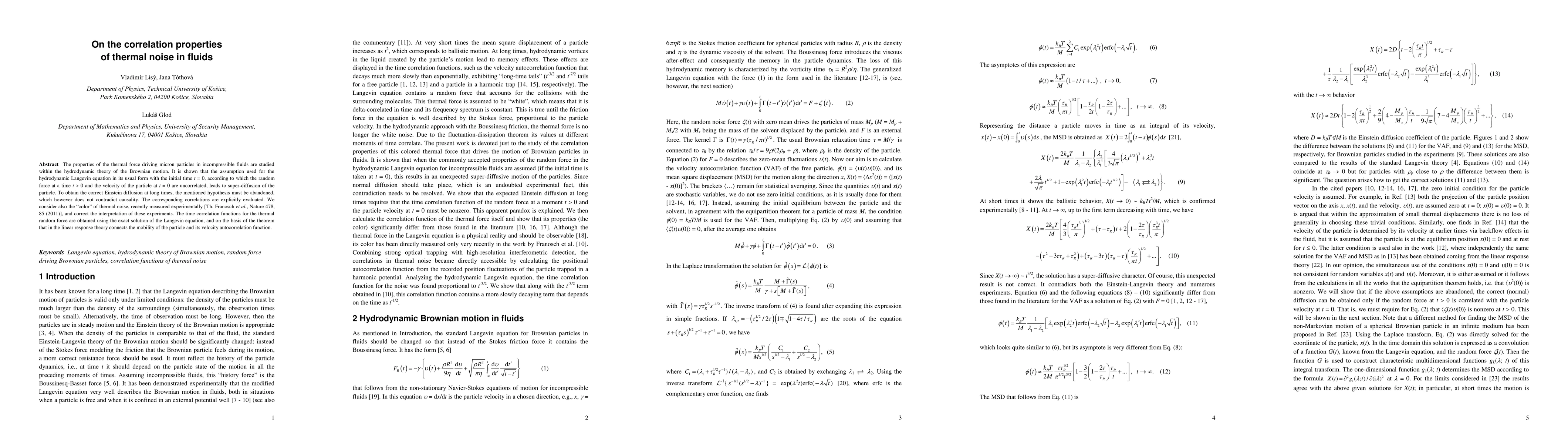 This paper investigates thermal noise in fluids affecting micron particles, revealing that standard assumptions in hydrodynamic Langevin equation lead to super-diffusion. To achieve accurate Einstein diffusion, these assumptions must be revised without violating causality. The study also corrects recent experimental interpretations of thermal noise 'color', using exact Langevin equation solutions and linear response theory.