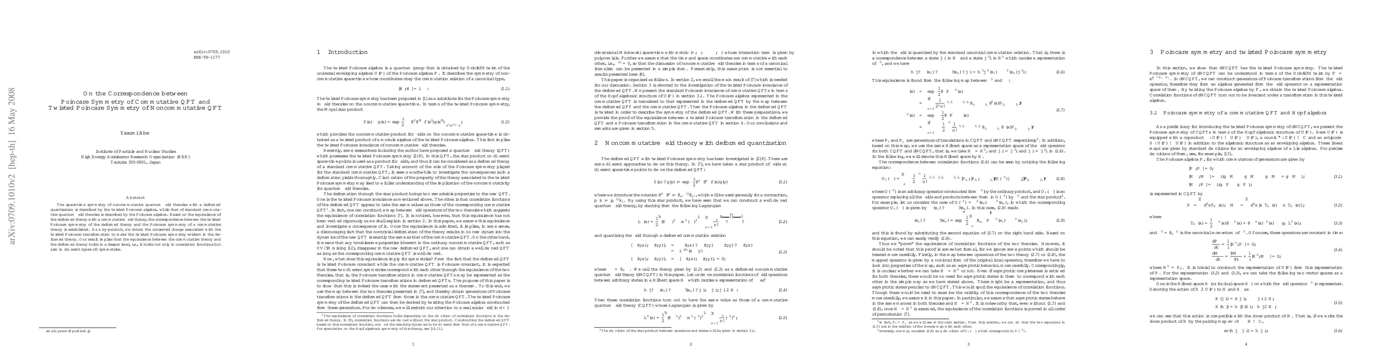 The paper establishes a correspondence between the Poincaré symmetry of commutative quantum field theories and the twisted Poincaré symmetry of noncommutative ones. It also identifies a conserved charge for the twisted Poincaré transformation, indicating a deeper equivalence between the two theories beyond correlation functions.