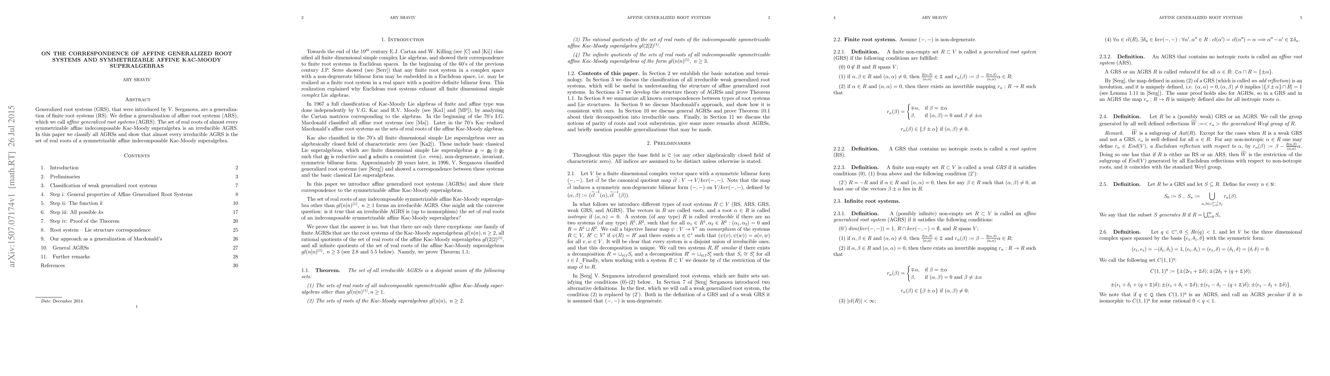 This paper introduces affine generalized root systems (AGRS) as a generalization of affine root systems and classifies all AGRSs, demonstrating that almost every irreducible AGRS corresponds to the real roots of a symmetrizable affine indecomposable Kac-Moody superalgebra.