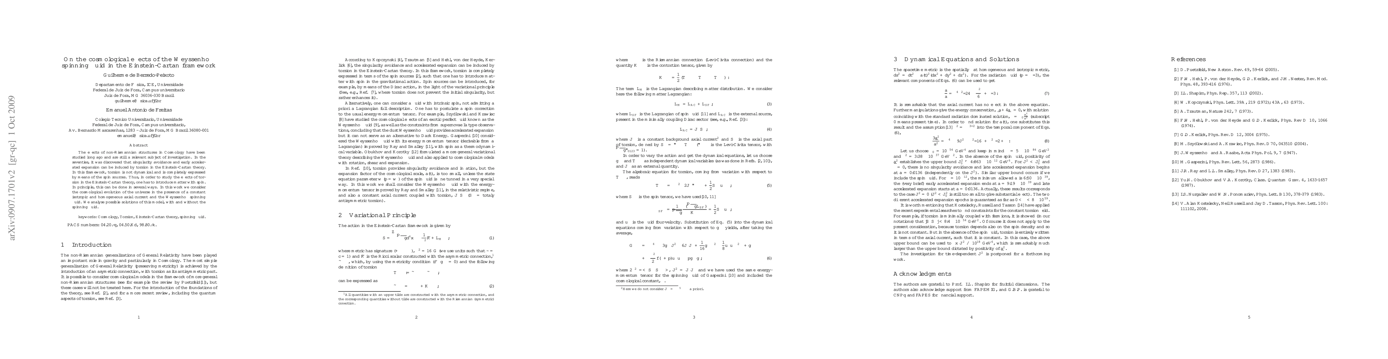 The effects of non-Riemannian structures in Cosmology have been studied long ago and are still a relevant subject of investigation. In the seventies, it was discovered that singularity avoidance and early accelerated expansion can be induced by torsion in the Einstein-Cartan theory. In this framework, torsion is not dynamical and is completely expressed by means of the spin sources. Thus, in order to study the effects of torsion in the Einstein-Cartan theory, one has to introduce matter with spin. In principle, this can be done in several ways. In this work we consider the cosmological evolution of the universe in the presence of a constant isotropic and homogeneous axial current and the Weyssenhoff spinning fluid. We analyse possible solutions of this model, with and without the spinning fluid.