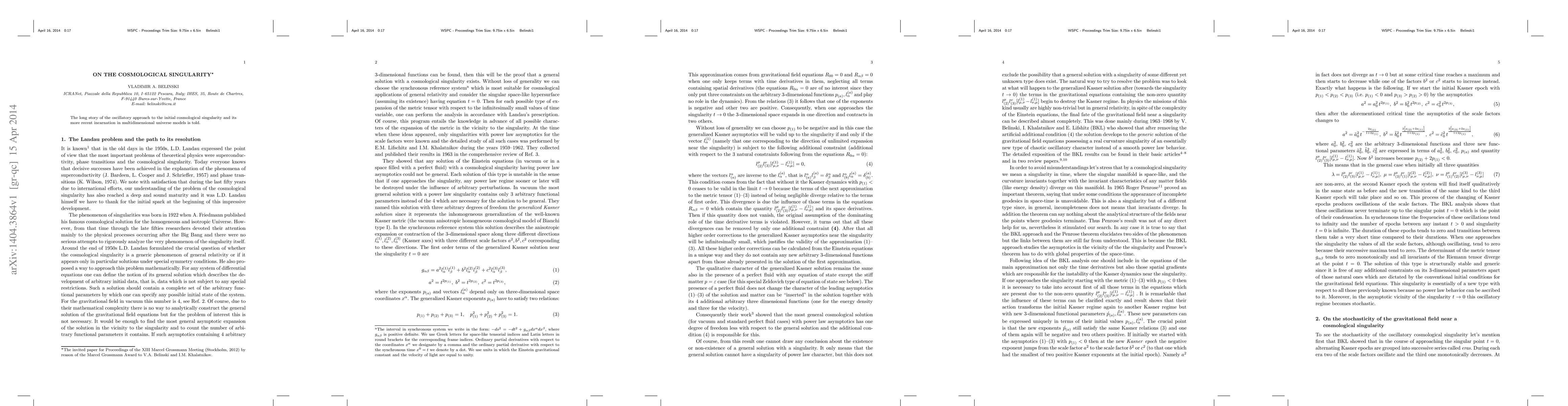 Summary: This paper explores the historical development of theories regarding the oscillatory approach to the initial cosmological singularity, emphasizing recent advancements in multidimensional universe models.