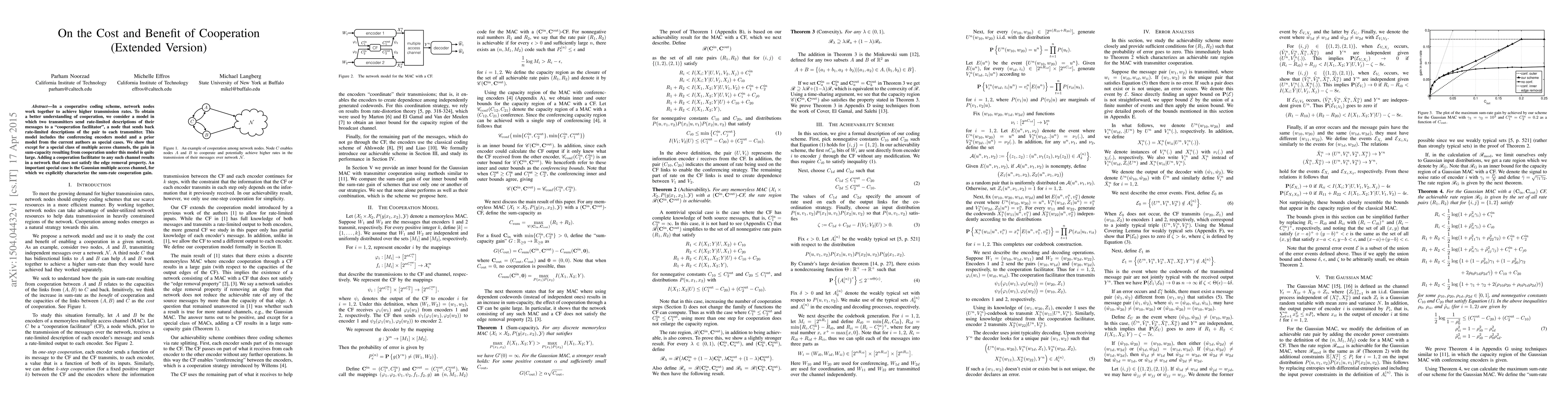 In a cooperative coding scheme, network nodes work together to achieve higher transmission rates. To obtain a better understanding of cooperation, we consider a model in which two transmitters send rate-limited descriptions of their messages to a "cooperation facilitator", a node that sends back rate-limited descriptions of the pair to each transmitter. This model includes the conferencing encoders model and a prior model from the current authors as special cases. We show that except for a special class of multiple access channels, the gain in sum-capacity resulting from cooperation under this model is quite large. Adding a cooperation facilitator to any such channel results in a network that does not satisfy the edge removal property. An important special case is the Gaussian multiple access channel, for which we explicitly characterize the sum-rate cooperation gain.