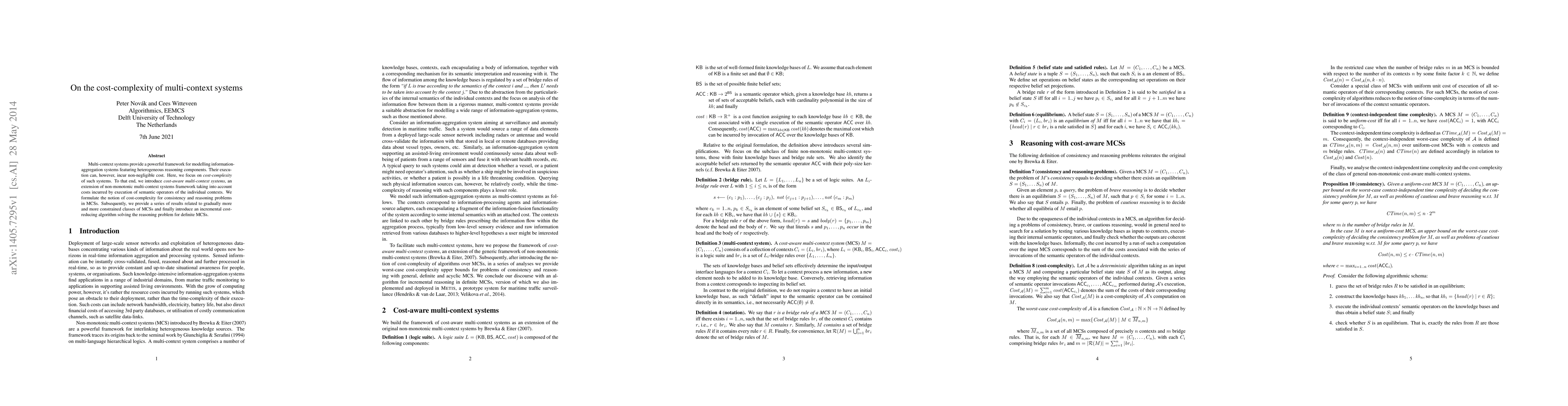 This paper introduces cost-aware multi-context systems to model information-aggregation with heterogeneous reasoning components, exploring their cost-complexity for consistency and reasoning problems.