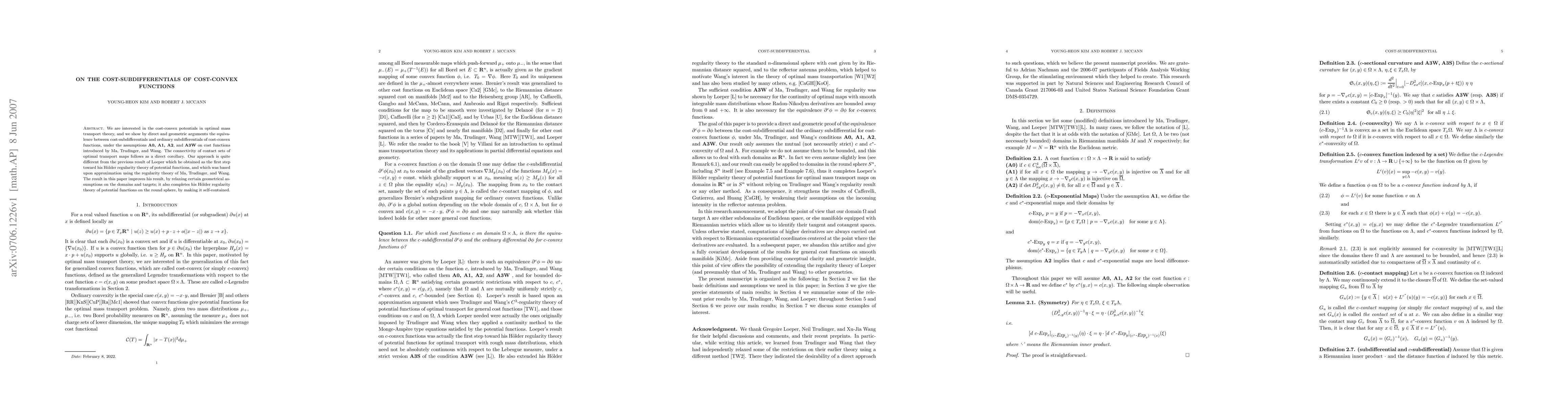 This paper establishes the equivalence between cost-subdifferentials and ordinary subdifferentials for cost-convex functions in optimal mass transport, under specific assumptions. It improves upon previous results by relaxing geometrical assumptions and completes the Hoelder regularity theory for potential functions on the round sphere.