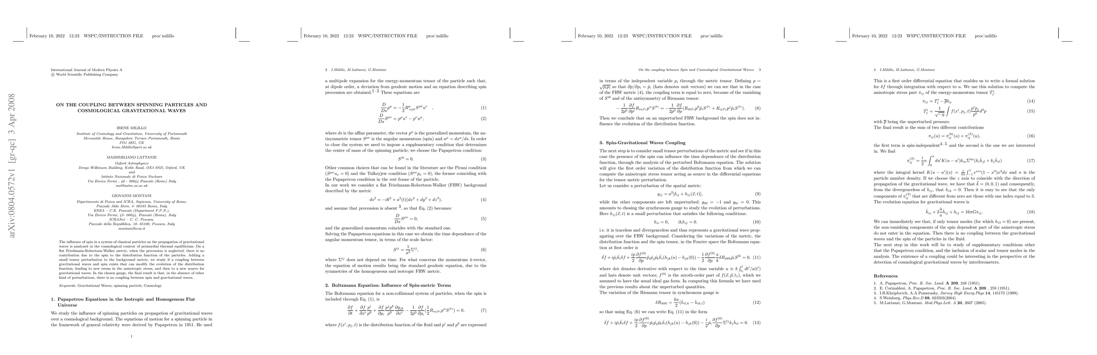 This paper investigates the potential coupling between spinning particles and cosmological gravitational waves in a primordial thermal equilibrium context. Despite introducing a small tensor perturbation to the background metric, the study concludes that there is no coupling between spin and gravitational waves, thus no modification to the distribution function or anisotropic stress.