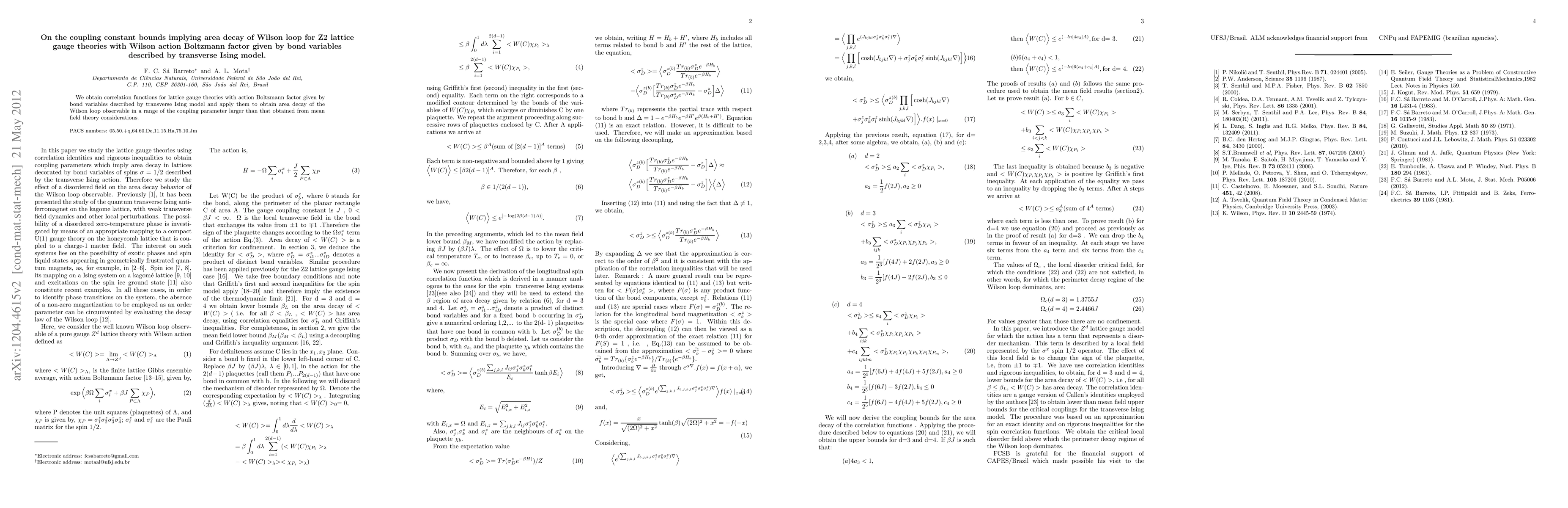 We obtain correlation functions for lattice gauge theories with action Boltzmann factor given by bond variables described by transverse Ising model and apply them to obtain area decay of the Wilson loop observable in a range of the coupling parameter larger than that obtained from mean field theory considerations.