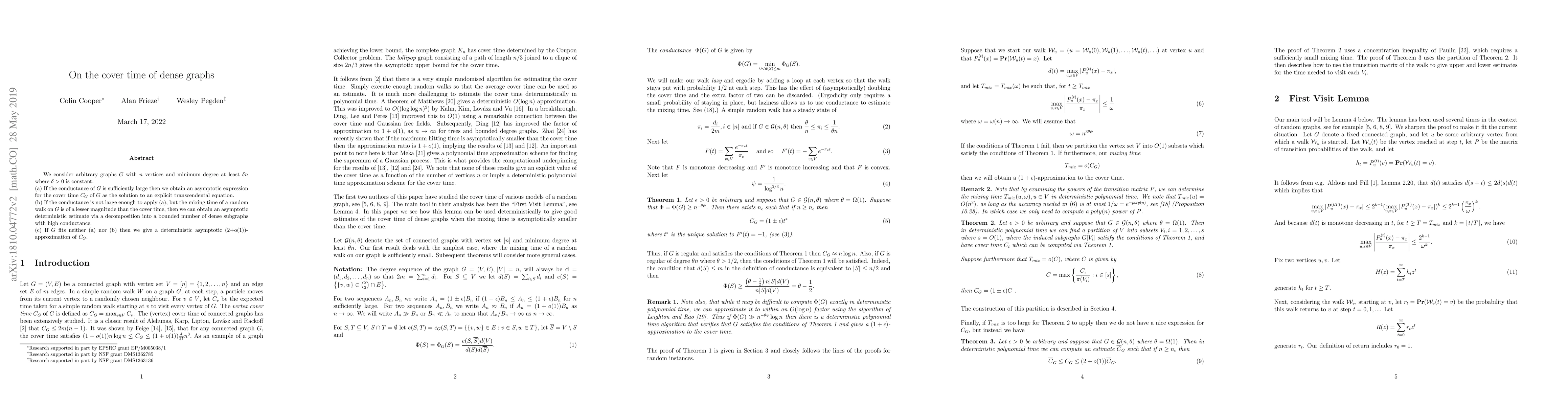 Researchers found that for dense graphs with a high minimum degree and sufficient conductance, they can derive an asymptotic expression for the cover time. For less conductant or non-dense graphs, they provide deterministic approximations of the cover time.