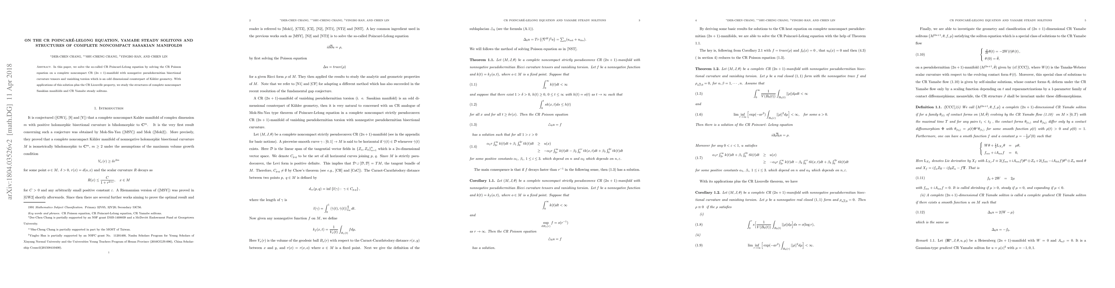 In this paper, we solve the so-called CR Poincar\'e-Lelong equation by solving the CR Poisson equation on a complete noncompact CR $(2n+1)$-manifold with nonegative pseudohermitian bisectional curvature tensors and vanishing torsion which is an odd dimensional counterpart of K\"ahler geometry. With applications of this solution plus the CR Liouvelle property, we study the structures of complete noncompact Sasakian manifolds and CR Yamabe steady solitons.
