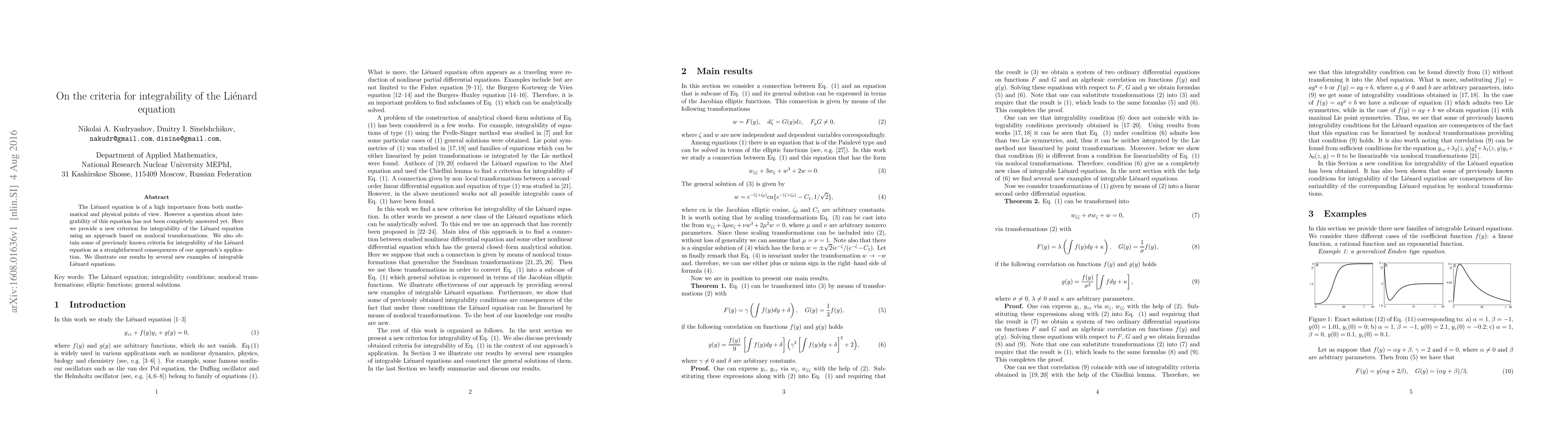 This paper introduces a new criterion for the integrability of the Liénard equation using nonlocal transformations, and demonstrates its effectiveness by deriving previously known criteria as well as presenting new integrable examples.