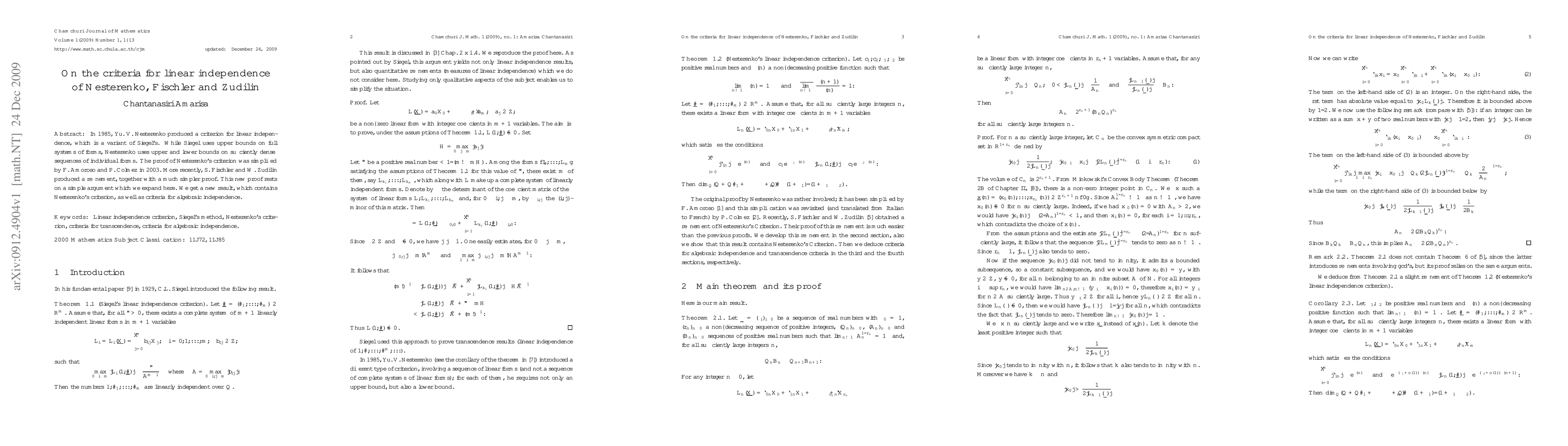 In 1985, Yu. V. Nesterenko produced a criterion for linear independence, which is a variant of Siegel's. While Siegel uses upper bounds on full systems of forms, Nesterenko uses upper and lower bounds on sufficiently dense sequences of individual forms. The proof of Nesterenko's criterion was simplified by F. Amoroso and P. Colmez in 2003. More recently, S. Fischler and W. Zudilin produced a refinement, together with a much simpler proof. This new proof rests on a simple argument which we expand here. We get a new result, which contains Nesterenko's criterion, as well as criteria for algebraic independence.
