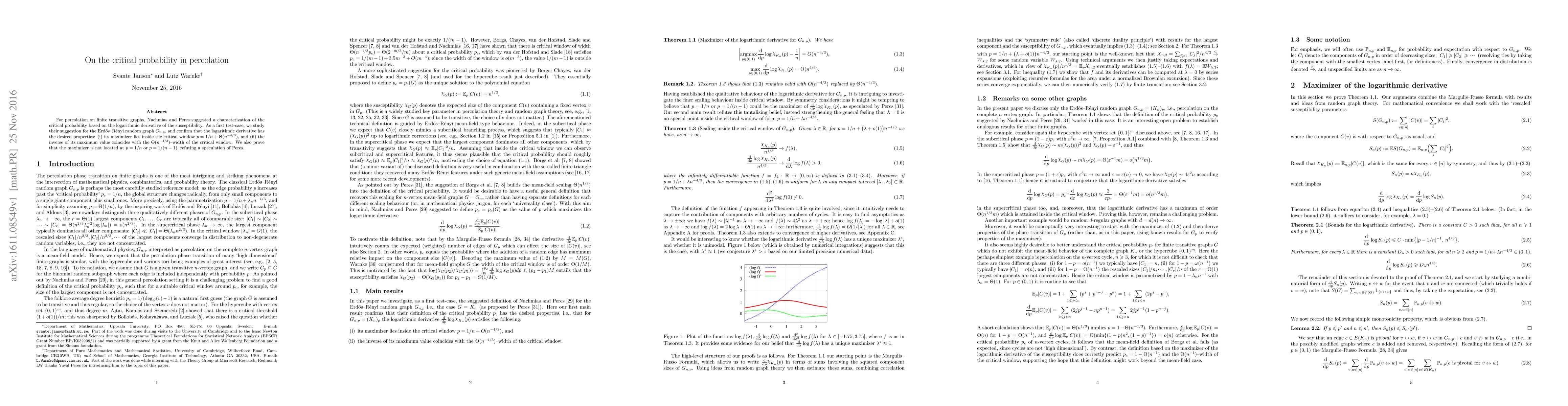 Researchers confirm a characterization of critical probability in percolation for Erdøs-Rényi random graph G_{n,p}, finding the maximum of its logarithmic derivative within a critical window p=1/n+θ(n^{-4/3}).