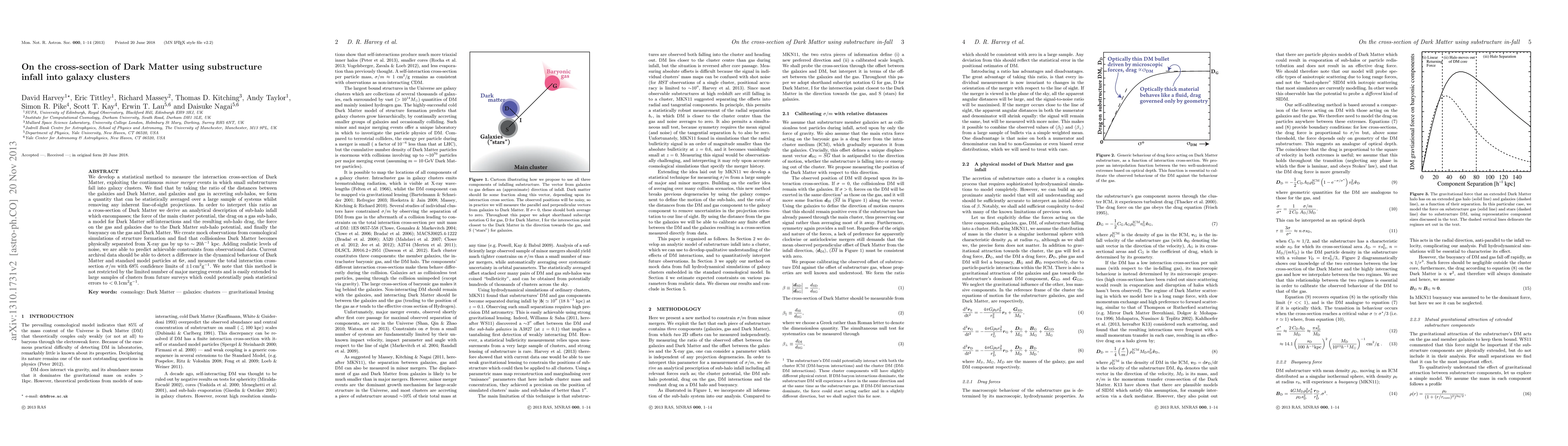 We develop a statistical method to measure the interaction cross-section of Dark Matter, exploiting the continuous minor merger events in which small substructures fall into galaxy clusters. We find that by taking the ratio of the distances between the galaxies and Dark Matter, and galaxies and gas in accreting sub-halos, we form a quantity that can be statistically averaged over a large sample of systems whilst removing any inherent line-of-sight projections. In order to interpret this ratio as a cross-section of Dark Matter we derive an analytical description of sub-halo infall which encompasses; the force of the main cluster potential, the drag on a gas sub-halo, a model for Dark Matter self-interactions and the resulting sub-halo drag, the force on the gas and galaxies due to the Dark Matter sub-halo potential, and finally the buoyancy on the gas and Dark Matter. We create mock observations from cosmological simulations of structure formation and find that collisionless Dark Matter becomes physically separated from X-ray gas by up to 20h^-1 kpc. Adding realistic levels of noise, we are able to predict achievable constraints from observational data. Current archival data should be able to detect a difference in the dynamical behaviour of Dark Matter and standard model particles at 6 sigma, and measure the total interaction cross-section sigma/m with 68% confidence limits of +/- 1cm2g^-1. We note that this method is not restricted by the limited number of major merging events and is easily extended to large samples of clusters from future surveys which could potentially push statistical errors to 0.1cm^2g^-1.