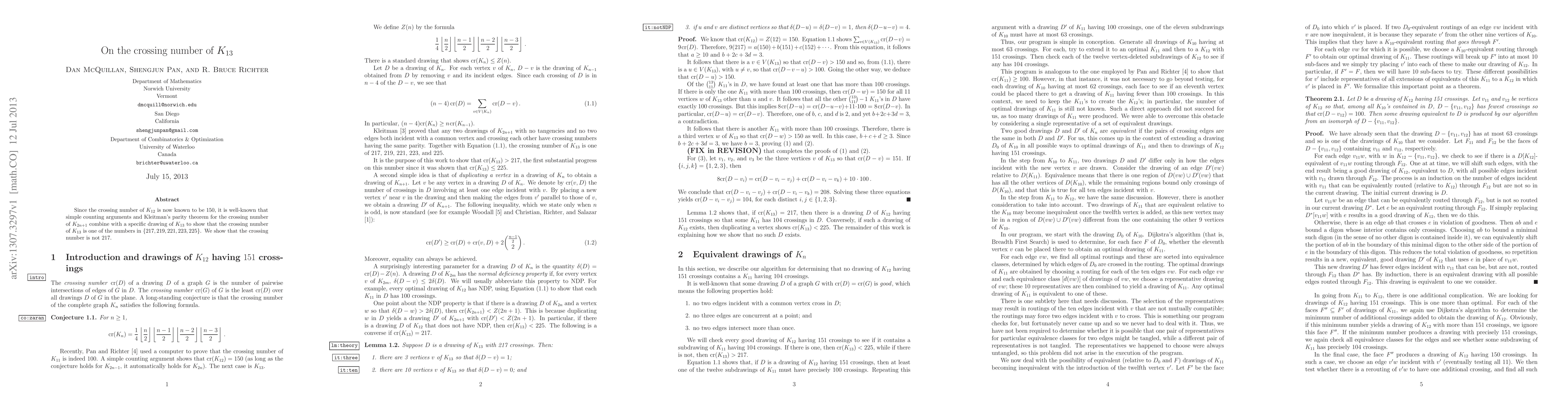 Researchers study the crossing number of K13, showing it is 221 by ruling out previously proposed values of 217.