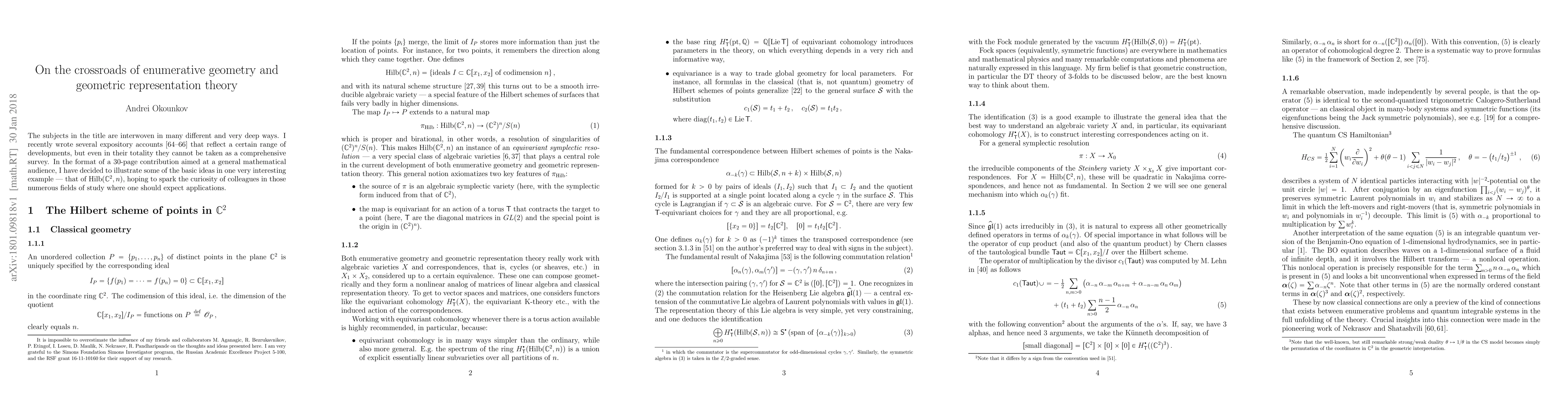 This paper explores the intersection of enumerative geometry and geometric representation theory, using HilbpC2 as a key example to illustrate basic ideas with potential applications in various fields.