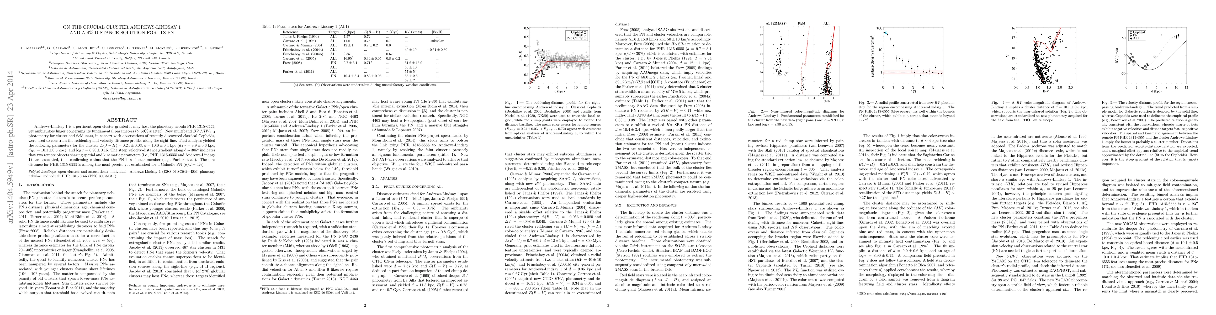 Andrews-Lindsay 1 is a pertinent open cluster granted it may host the planetary nebula PHR 1315-6555, yet ambiguities linger concerning its fundamental parameters (>50% scatter). New multiband BVJHW(1-4) photometry for cluster and field stars, in concert with observations of recently discovered classical Cepheids, were used to constrain the reddening and velocity-distance profiles along the sight-line. That analysis yielded the following parameters for the cluster: E(J-H)=0.24+-0.03, d=10.0+-0.4 kpc (d(JH)=9.9+-0.6 kpc, d(BV)=10.1+-0.5 kpc), and log(t)=8.90+-0.15. The steep velocity-distance gradient along l~305 indicates that two remote objects sharing spatial and kinematic parameters (i.e., PHR 1315-6555 and Andrews-Lindsay 1) are associated, thus confirming claims that the PN is a cluster member (e.g., Parker et al.). The new distance for PHR 1315-6555 is among the most precise yet established for a Galactic PN (err_d=4%).