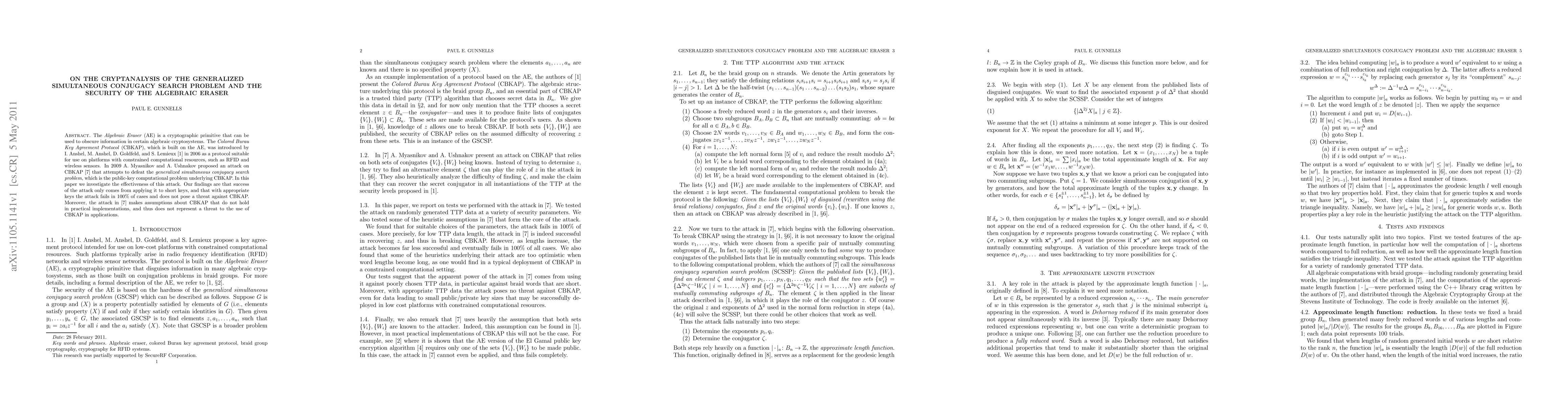 The Algebraic Eraser (AE) is a cryptographic primitive that can be used to obscure information in certain algebraic cryptosystems. The Colored Burau Key Agreement Protocol (CBKAP), which is built on the AE, was introduced by I. Anshel, M. Anshel, D. Goldfeld, and S. Lemieux in 2006 as a protocol suitable for use on platforms with constrained computational resources, such as RFID and wireless sensors. In 2009 A. Myasnikov and A. Ushnakov proposed an attack on CBKAP that attempts to defeat the generalized simultaneous conjugacy search problem, which is the public-key computational problem underlying CBKAP. In this paper we investigate the effectiveness of this attack. Our findings are that success of the attack only comes from applying it to short keys, and that with appropriate keys the attack fails in 100% of cases and does not pose a threat against CBKAP. Moreover, the attack makes assumptions about CBKAP that do not hold in practical implementations, and thus does not represent a threat to the use of CBKAP in applications.