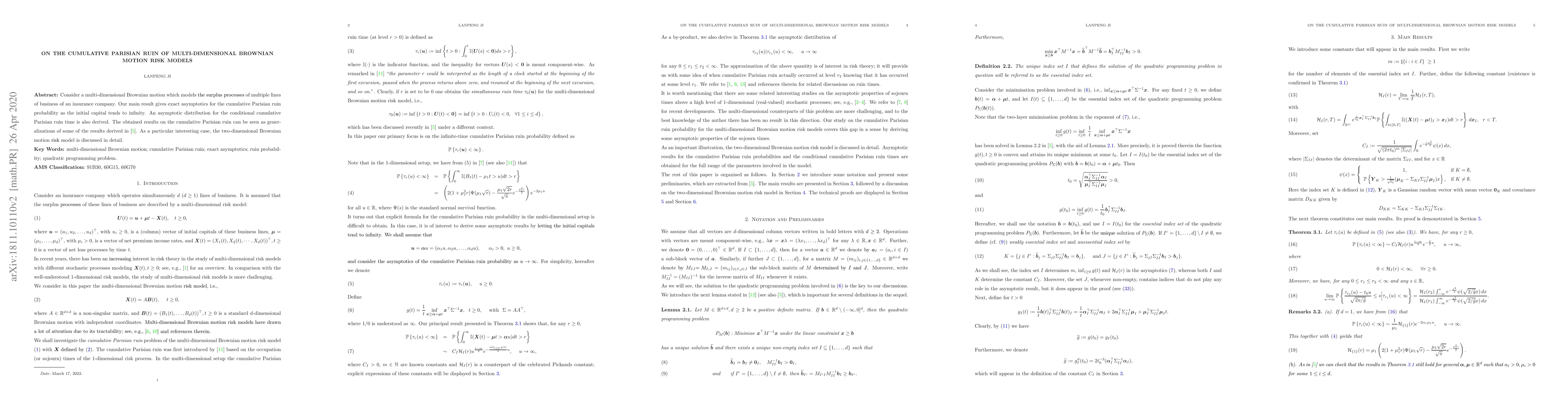This paper provides exact asymptotics for the cumulative Parisian ruin probability of a multi-dimensional Brownian motion modeling an insurance company's surplus processes, as initial capital grows infinitely. It also derives an asymptotic distribution for the conditional cumulative Parisian ruin time, extending results from Debicki et al (2018).