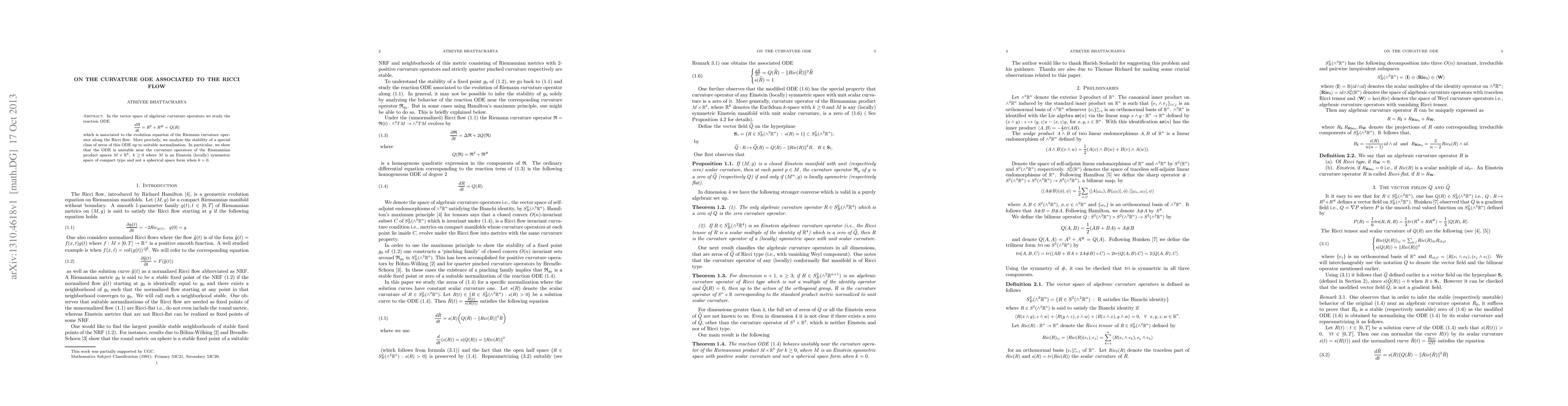 This paper investigates the stability of specific solutions in the curvature ODE linked to Ricci flow, finding instability near curvature operators of Riemannian product spaces under certain conditions. It focuses on Einstein locally symmetric compact spaces and their behavior when multiplied by Euclidean space.