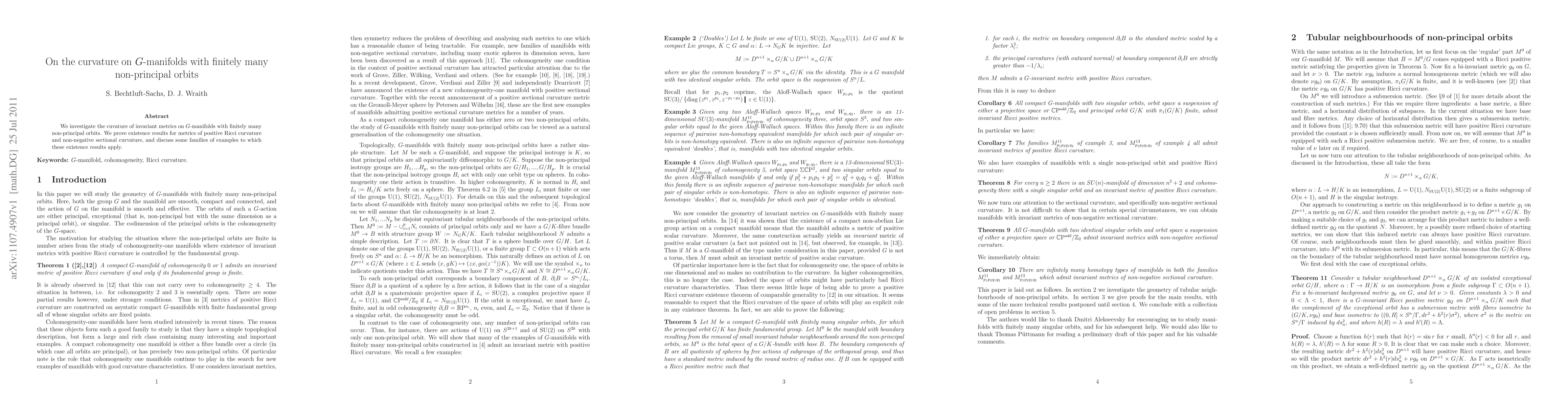 We investigate the curvature of invariant metrics on G-manifolds with finitely many non-principal orbits. We prove existence results for metrics of positive Ricci curvature and non-negative sectional curvature, and discuss some families of examples to which these existence results apply.