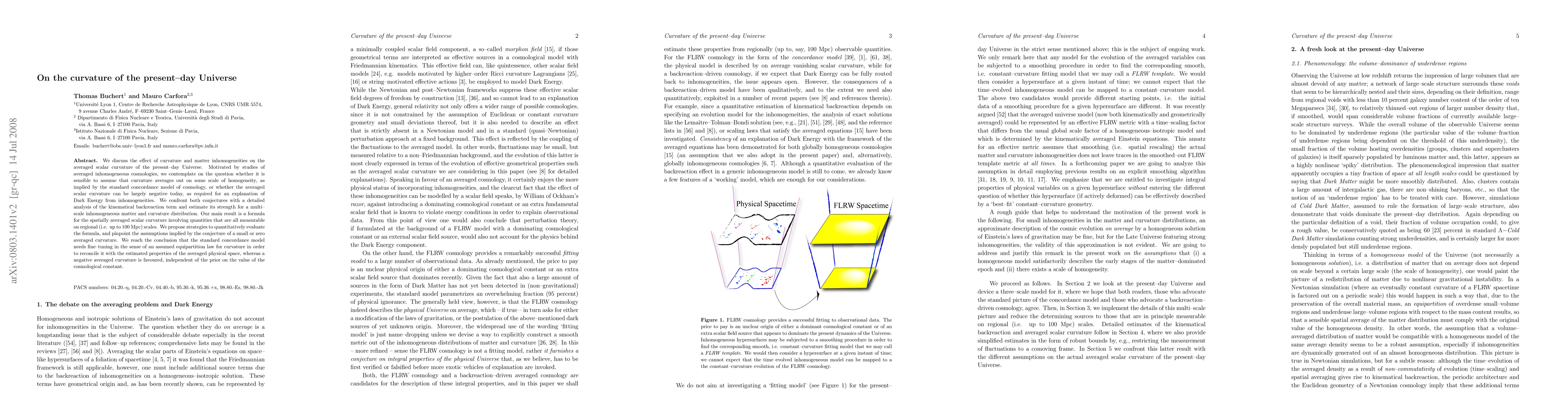 We discuss the effect of curvature and matter inhomogeneities on the averaged scalar curvature of the present-day Universe. Motivated by studies of averaged inhomogeneous cosmologies, we contemplate on the question whether it is sensible to assume that curvature averages out on some scale of homogeneity, as implied by the standard concordance model of cosmology, or whether the averaged scalar curvature can be largely negative today, as required for an explanation of Dark Energy from inhomogeneities. We confront both conjectures with a detailed analysis of the kinematical backreaction term and estimate its strength for a multi-scale inhomogeneous matter and curvature distribution. Our main result is a formula for the spatially averaged scalar curvature involving quantities that are all measurable on regional (i.e. up to 100 Mpc) scales. We propose strategies to quantitatively evaluate the formula, and pinpoint the assumptions implied by the conjecture of a small or zero averaged curvature. We reach the conclusion that the standard concordance model needs fine-tuning in the sense of an assumed equipartition law for curvature in order to reconcile it with the estimated properties of the averaged physical space, whereas a negative averaged curvature is favoured, independent of the prior on the value of the cosmological constant.