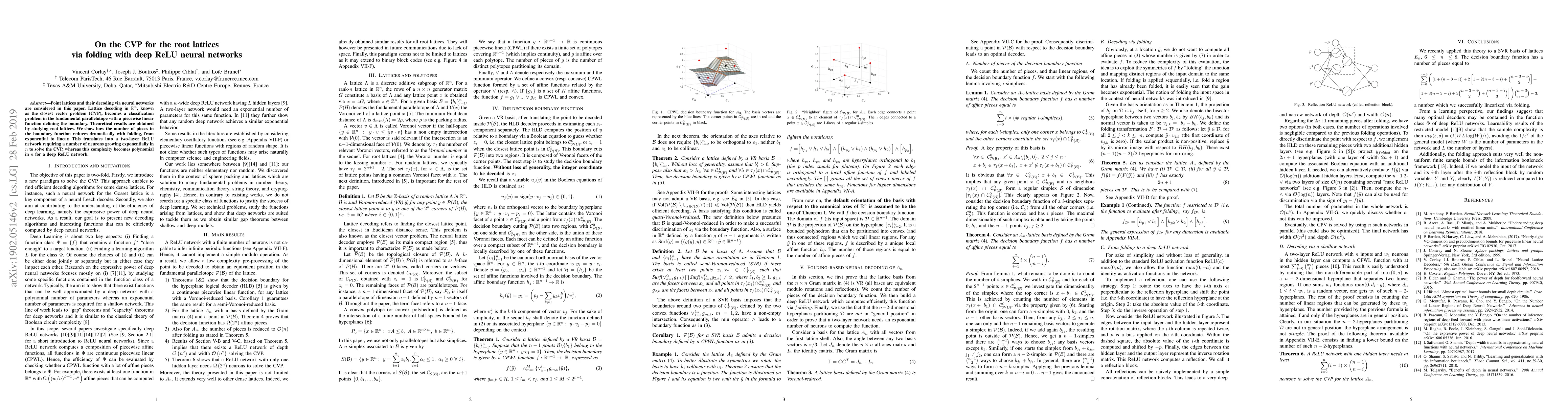This paper explores the Closest Vector Problem (CVP) in lattice decoding using neural networks, focusing on root lattices. It demonstrates that folding techniques with deep ReLU networks significantly reduce the complexity of boundary functions from exponential to linear, transforming exponential neuron requirements into polynomial complexity for solving CVP.