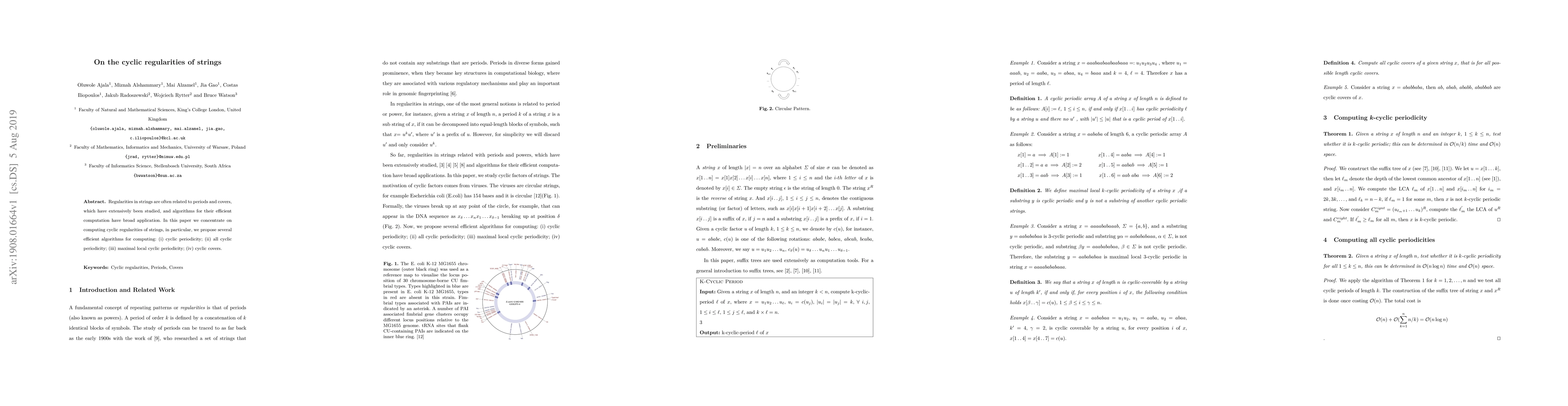 This paper proposes efficient algorithms for computing various cyclic regularities in strings, including cyclic periodicity, all cyclic periodicity, maximal local cyclic periodicity, and cyclic covers, highlighting their extensive applications.