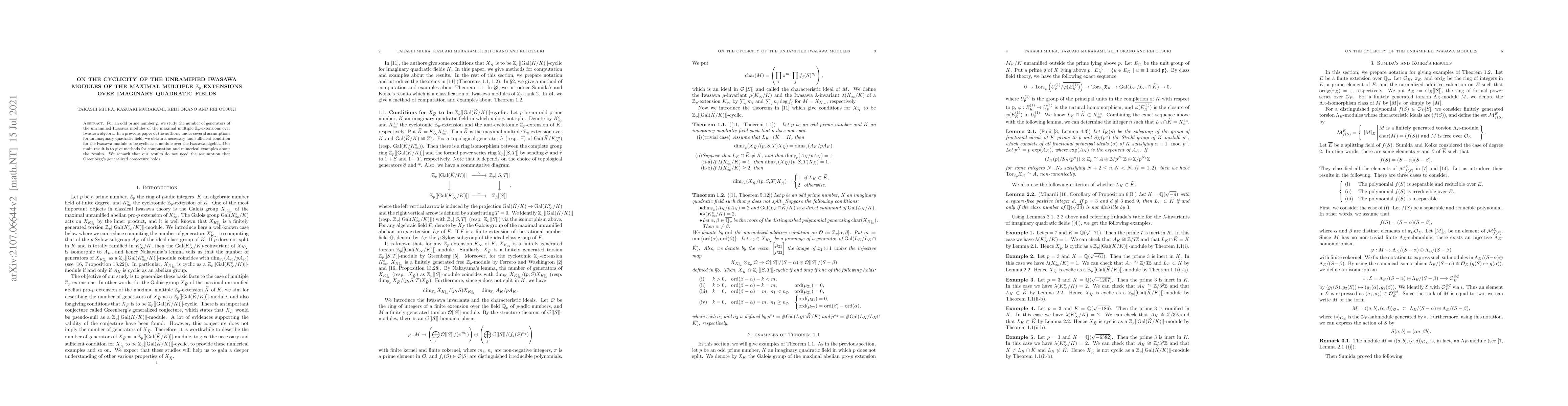 For an odd prime number $p$, we study the number of generators of the unramified Iwasawa modules of the maximal multiple $\mathbb{Z}_p$-extensions over Iwasawa algebra. In a previous paper of the authors, under several assumptions for an imaginary quadratic field, we obtain a necessary and sufficient condition for the Iwasawa module to be cyclic as a module over the Iwasawa algebla. Our main result is to give methods for computation and numerical examples about the results. We remark that our results do not need the assumption that Greenberg's generalized conjecture holds.