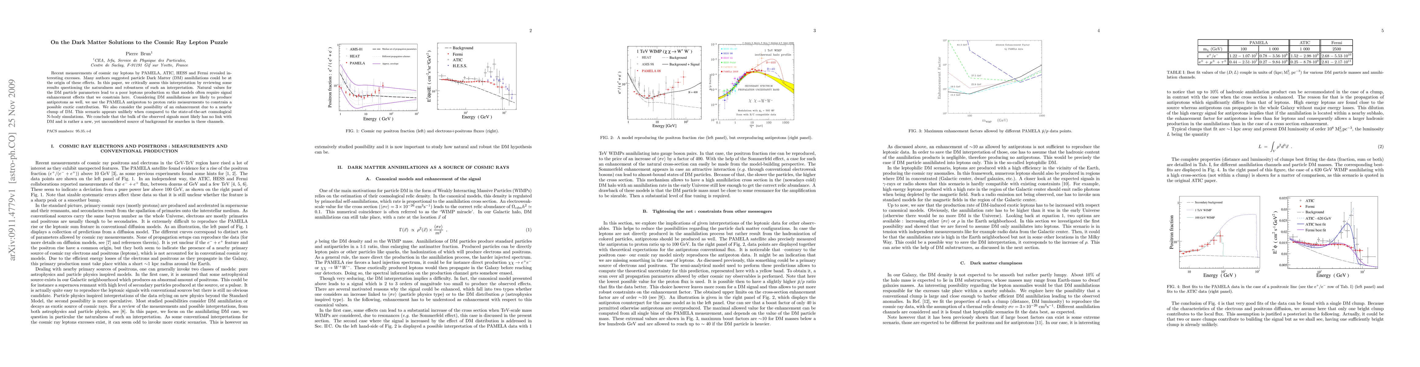 Recent measurements of cosmic ray leptons by PAMELA, ATIC, HESS and Fermi revealed interesting excesses. Many authors suggested particle Dark Matter (DM) annihilations could be at the origin of these effects. In this paper, we critically assess this interpretation by reviewing some results questioning the naturalness and robustness of such an interpretation. Natural values for the DM particle parameters lead to a poor leptons production so that models often require signal enhancement effects that we constrain here. Considering DM annihilations are likely to produce antiprotons as well, we use the PAMELA antiproton to proton ratio measurements to constrain a possible exotic contribution. We also consider the possibility of an enhancement due to a nearby clump of DM. This scenario appears unlikely when compared to the state-of-the-art cosmological N-body simulations. We conclude that the bulk of the observed signals most likely has no link with DM and is rather a new, yet unconsidered source of background for searches in these channels.
