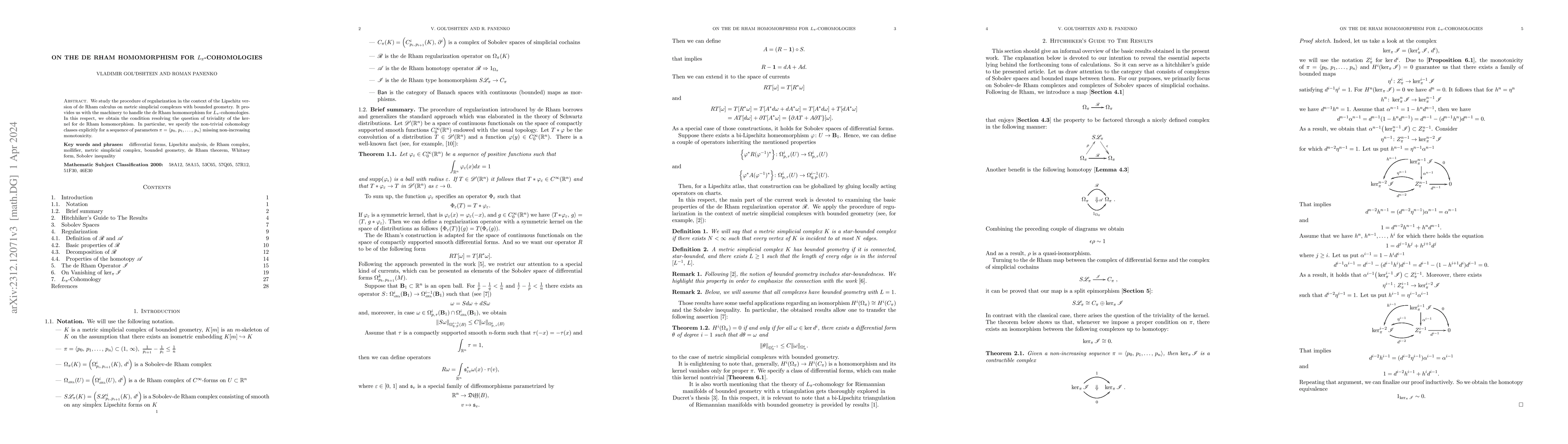 This paper explores regularization within the Lipschitz version of de Rham calculus on metric simplicial complexes, offering tools to manage the de Rham homomorphism for $L_\pi$-cohomologies. It determines conditions that resolve the kernel's triviality issue, explicitly identifying non-trivial cohomology classes for parameter sequences $\pi$ lacking non-increasing monotonicity.