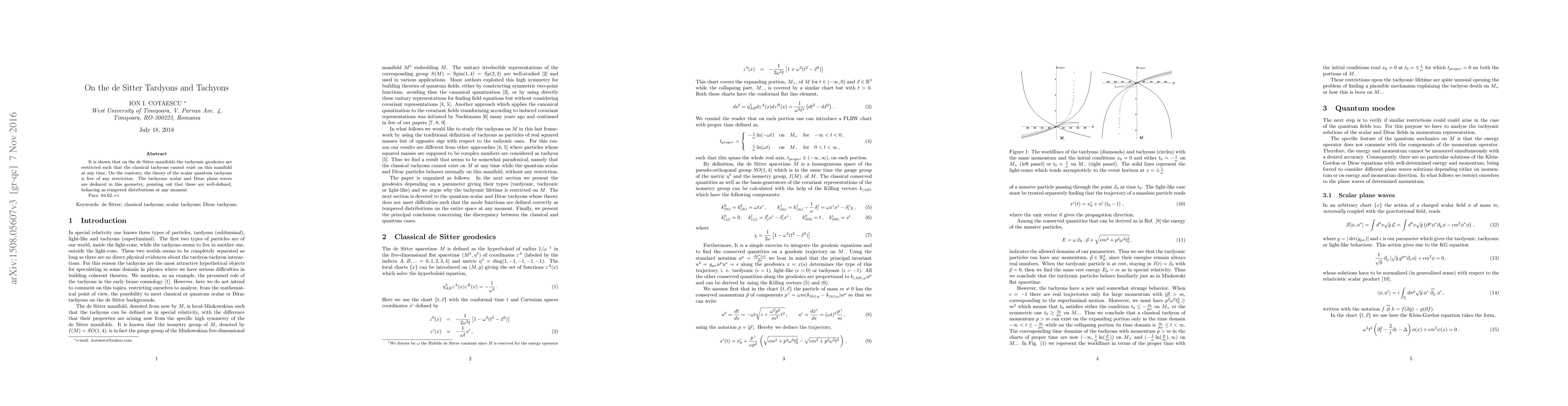 The research demonstrates that de Sitter manifolds prevent the existence of classical tachyons but allow for well-defined scalar quantum tachyons, with tachyonic scalar and Dirac plane waves behaving as tempered distributions.