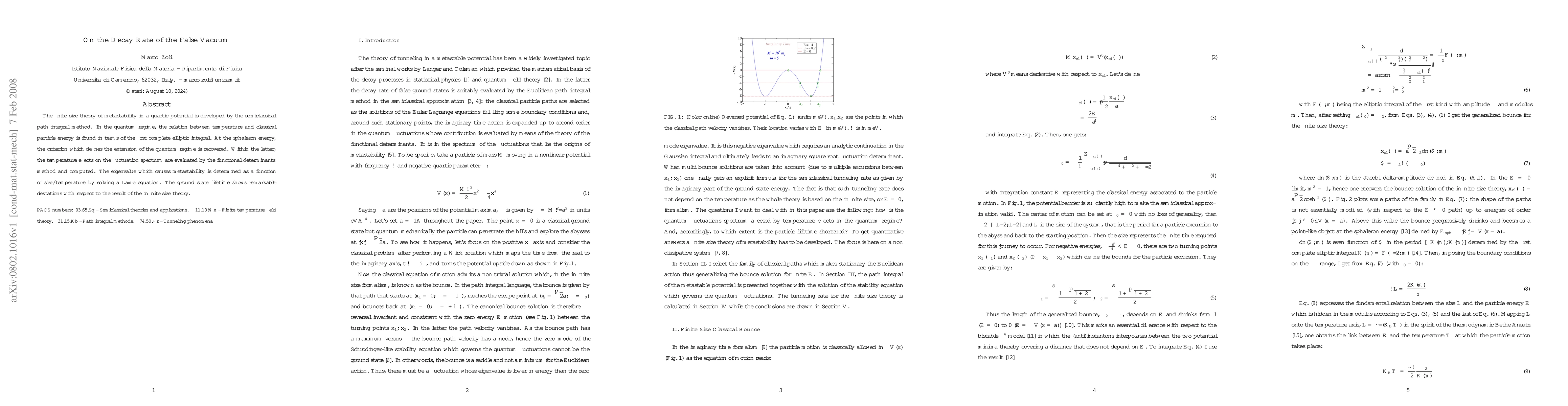 The finite size theory of metastability in a quartic potential is developed by the semiclassical path integral method. In the quantum regime, the relation between temperature and classical particle energy is found in terms of the first complete elliptic integral. At the sphaleron energy, the criterion which defines the extension of the quantum regime is recovered. Within the latter, the temperature effects on the fluctuation spectrum are evaluated by the functional determinants method and computed. The eigenvalue which causes metastability is determined as a function of size/temperature by solving a Lam\`{e} equation. The ground state lifetime shows remarkable deviations with respect to the result of the infinite size theory.