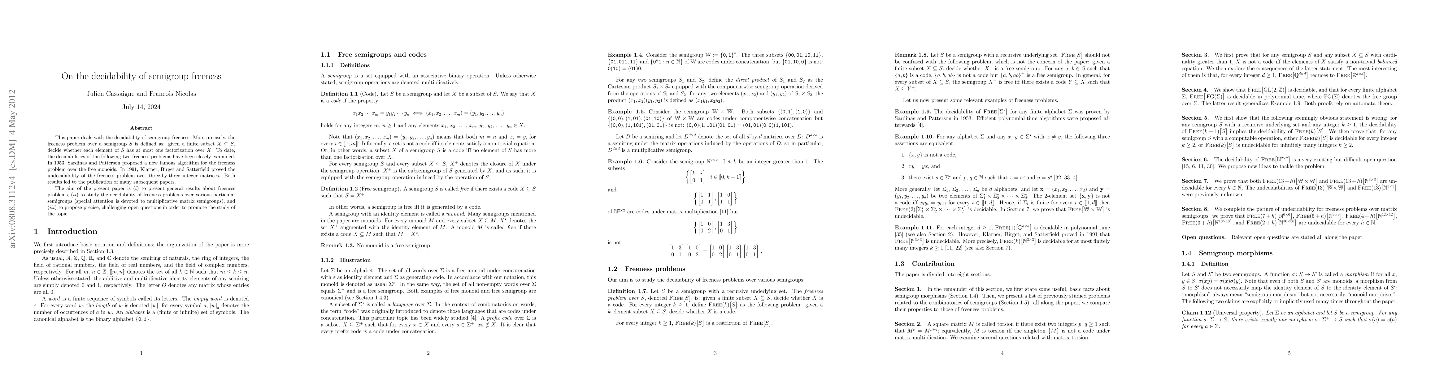 This paper investigates the decidability of semigroup freeness, focusing on determining whether each element in a semigroup has at most one factorization over a given finite subset. It reviews past results and proposes new findings regarding specific semigroups, particularly matrix semigroups, and suggests open questions to advance future research.