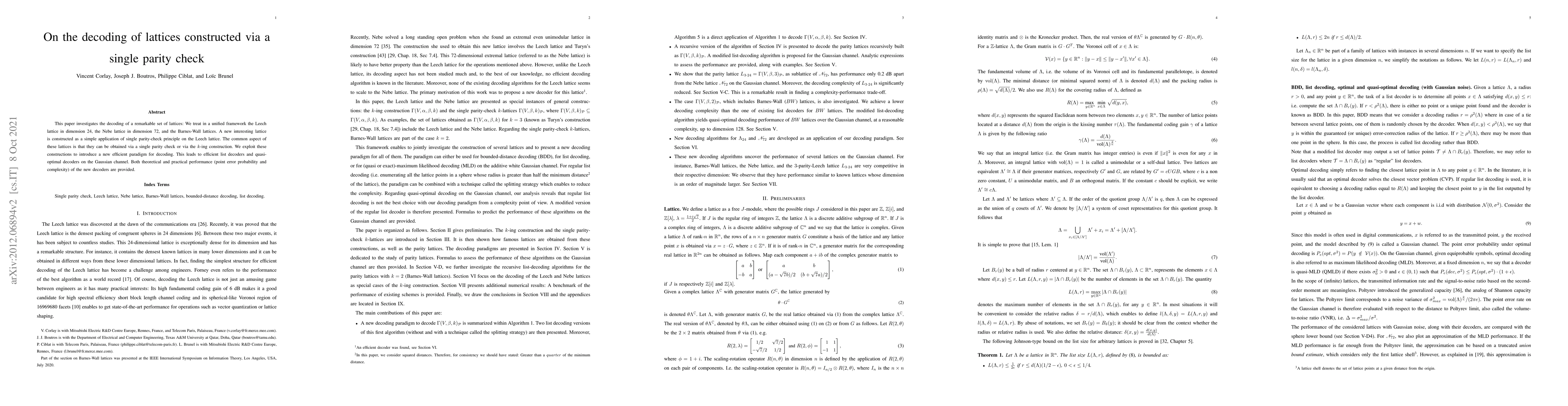 This paper presents a unified framework for decoding lattices like the Leech, Nebe, and Barnes-Wall lattices, leveraging a single parity-check principle. It introduces efficient list and quasi-optimal decoders for these lattices, demonstrating both theoretical and practical performance improvements.