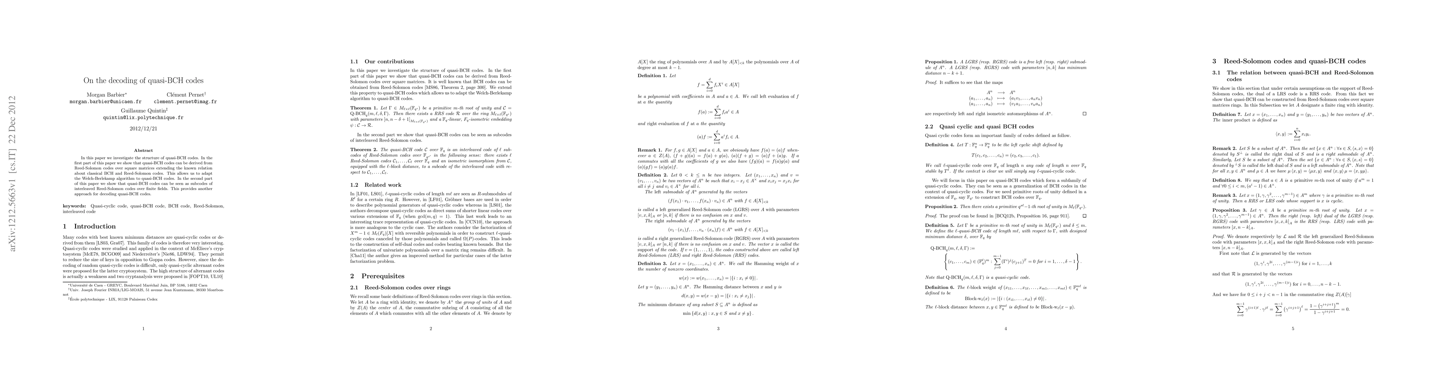 This research extends the decoding capabilities for quasi-BCH codes, which are important in error-correcting codes for cryptographic applications, by adapting the Welch-Berlekamp algorithm and providing an alternative decoding approach through interleaved Reed-Solomon codes.