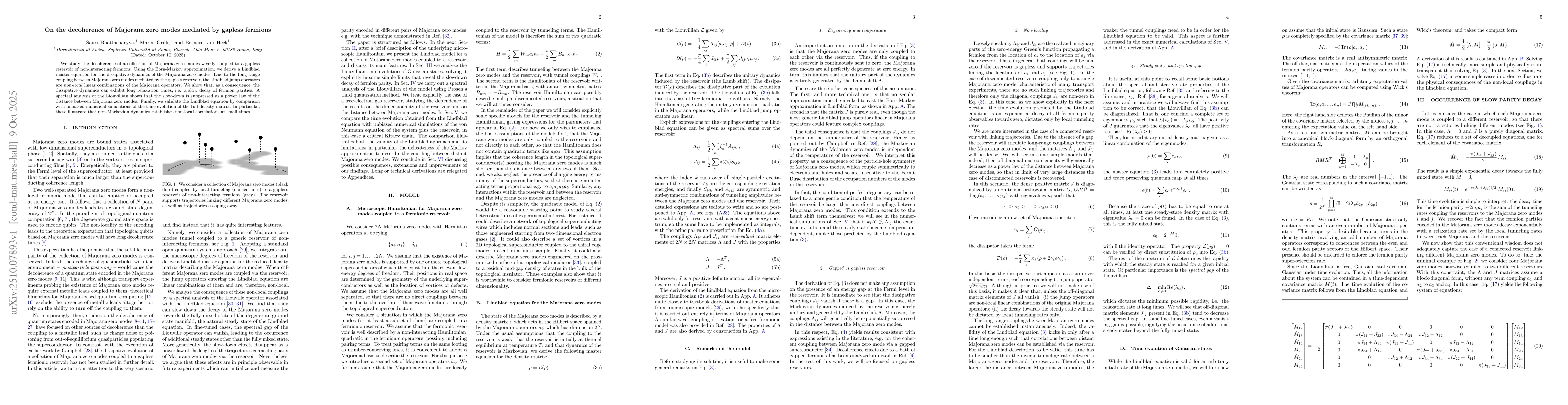 The work presents a detailed derivation of the Lindblad couplings for various reservoir models and provides a spectral analysis of the Liouvillian operator, offering a framework to study decoherence in Majorana-based quantum systems.