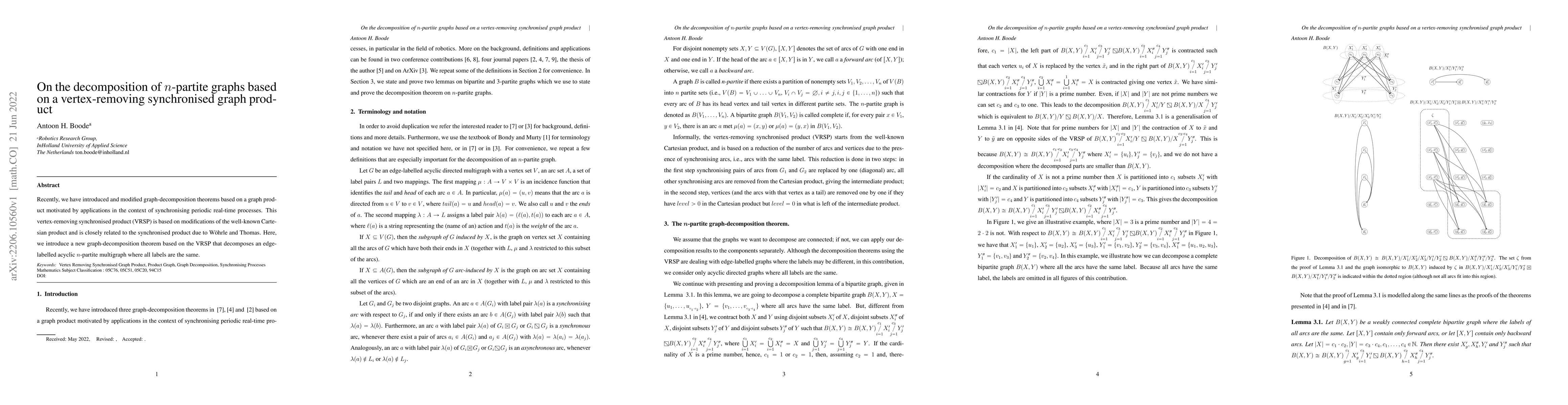 This paper introduces a new graph-decomposition theorem based on the vertex-removing synchronised product (VRSP), which decomposes edge-labelled acyclic n-partite multigraphs where all labels are identical. The VRSP is a modification of the Cartesian product, tailored for synchronising periodic real-time processes.