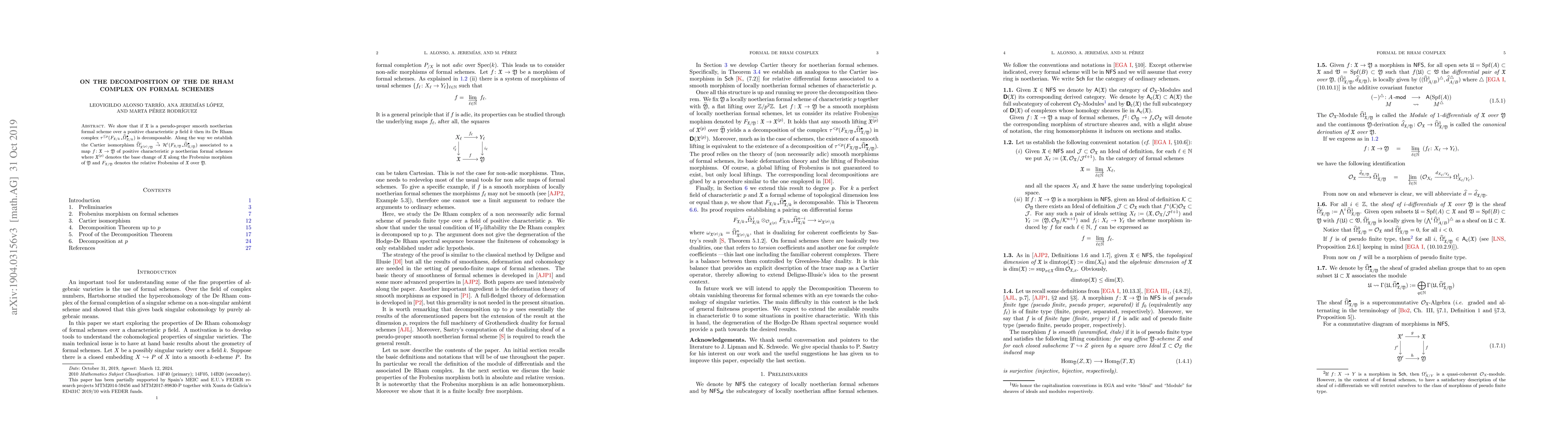 This paper demonstrates the decomposability of the truncated De Rham complex for pseudo-proper smooth noetherian formal schemes over fields of positive characteristic $p$, and shows that the full De Rham complex is decomposable when the scheme's dimension equals $p$. The study also establishes the Cartier isomorphism for smooth morphisms of such formal schemes.