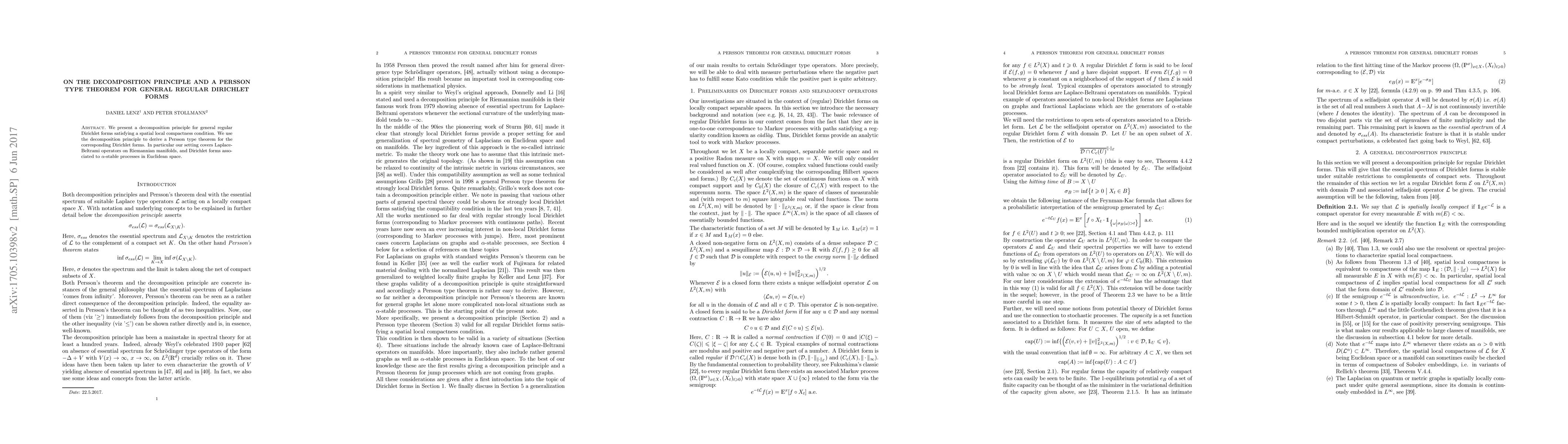 Summary: This paper introduces a decomposition principle for general regular Dirichlet forms under spatial local compactness, and utilizes it to establish a Persson type theorem, applicable to Laplace-Beltrami operators on Riemannian manifolds and $\alpha$-stable processes in Euclidean space.