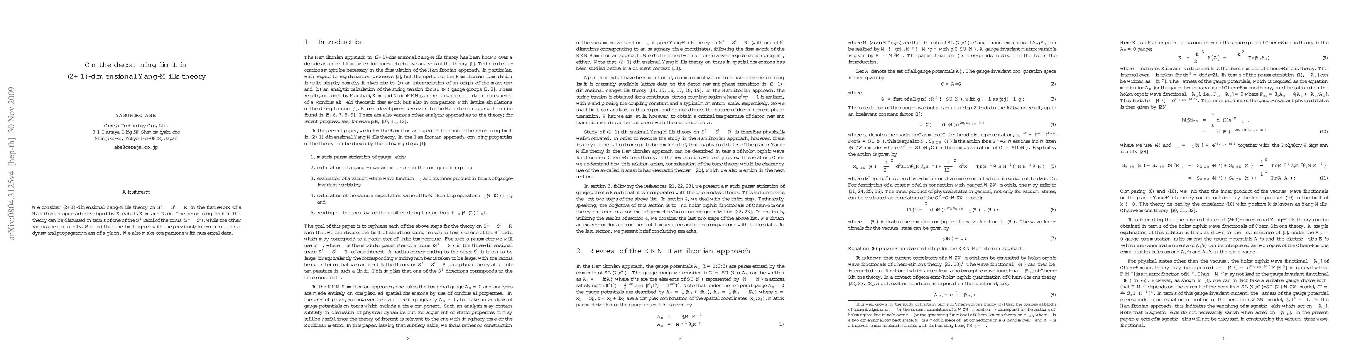 We consider (2+1)-dimensional Yang-Mills theory on $S^1 \times S^1 \times {\bf R}$ in the framework of a Hamiltonian approach developed by Karabali, Kim and Nair. The deconfining limit in the theory can be discussed in terms of one of the $S^1$ radii of the torus ($S^1 \times S^1$), while the other radius goes to infinity. We find that the limit agrees with the previously known result for a dynamical propagator mass of a gluon. We also make comparisons with numerical data.