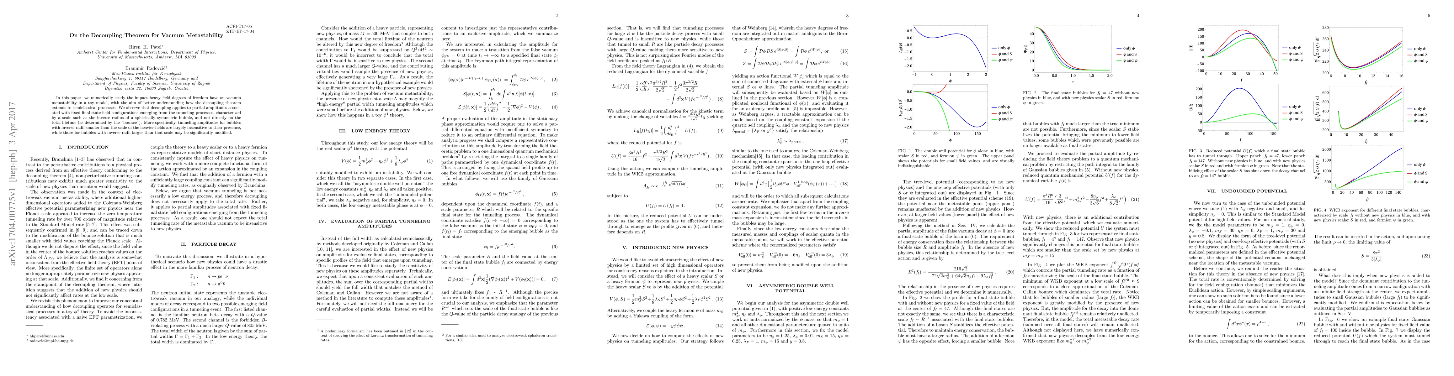 Researchers investigated how heavy field degrees of freedom affect vacuum metastability in a toy model. They found that decoupling applies to partial amplitudes associated with specific final state configurations, not directly on the total lifetime of tunneling processes.