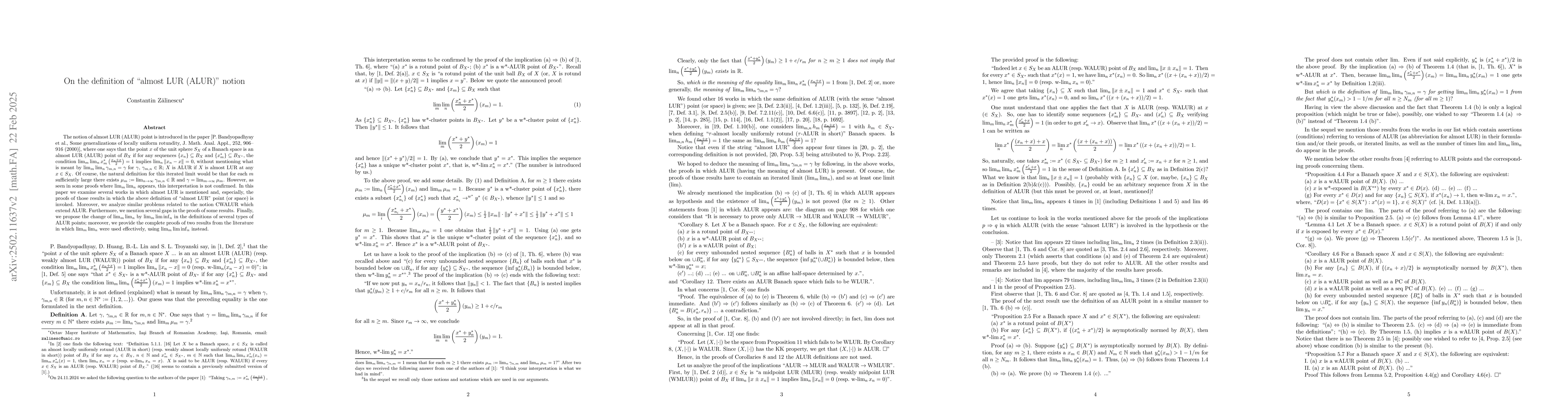 The paper examines various works that utilize the concept of 'almost LUR' (ALUR) points and spaces, scrutinizing proofs and identifying gaps, particularly in the interpretation of iterated limits.