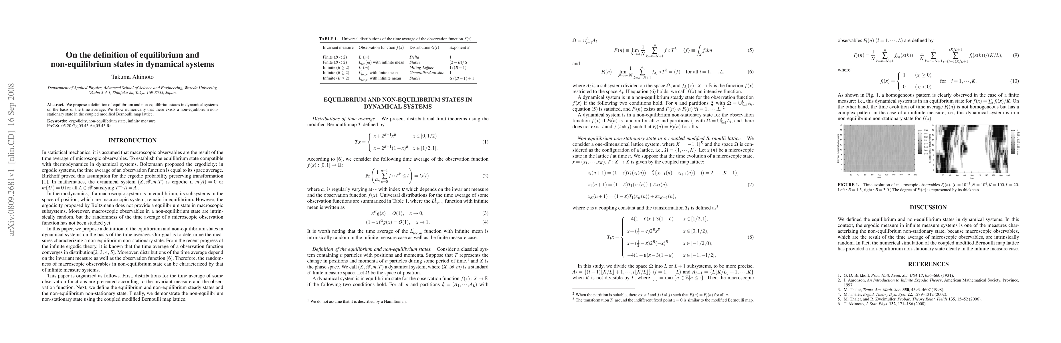 Summary: This paper proposes a new definition of equilibrium and non-equilibrium states in dynamical systems using the time average. It demonstrates numerically the existence of a non-equilibrium, non-stationary state in a coupled modified Bernoulli map lattice.