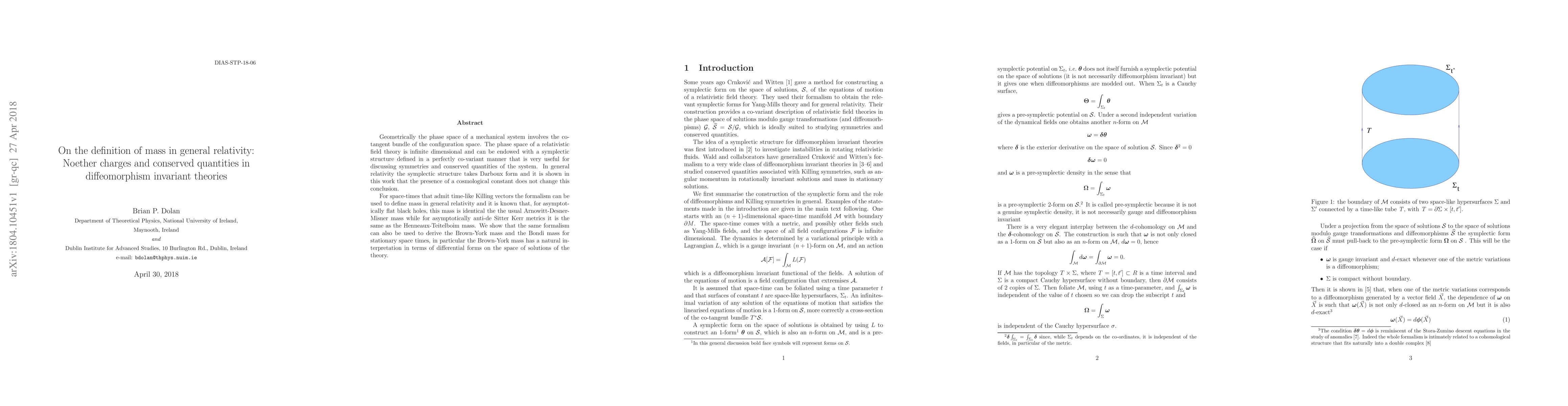Geometrically the phase space of a mechanical system involves the co-tangent bundle of the configuration space. The phase space of a relativistic field theory is infinite dimensional and can be endowed with a symplectic structure defined in a perfectly co-variant manner that is very useful for discussing symmetries and conserved quantities of the system. In general relativity the symplectic structure takes Darboux form and it is shown in this work that the presence of a cosmological constant does not change this conclusion. For space-times that admit time-like Killing vectors the formalism can be used to define mass in general relativity and it is known that, for asymptotically flat black holes, this mass is identical the the usual Arnowitt-Desner-Misner mass while for asymptotically anti-de Sitter Kerr metrics it is the same as the Henneaux-Teitelboim mass. We show that the same formalism can also be used to derive the Brown-York mass and the Bondi mass for stationary space times, in particular the Brown-York mass has a natural interpretation in terms of differential forms on the space of solutions of the theory.