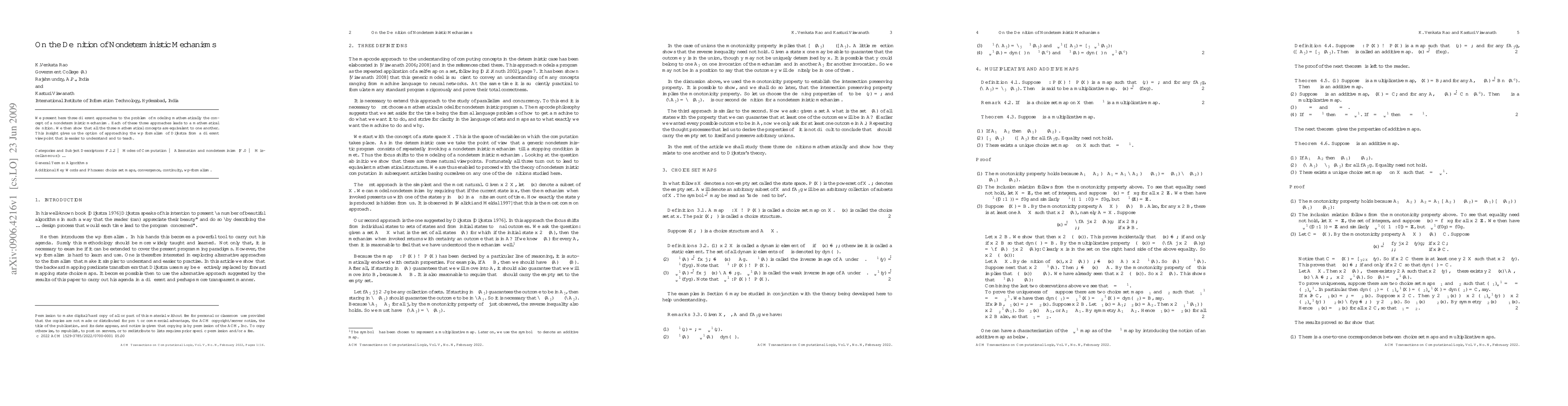 Researchers present three approaches to defining non-deterministic mechanisms, showing they are equivalent and offering a new perspective on the wp-formalism of Dijkstra's work.