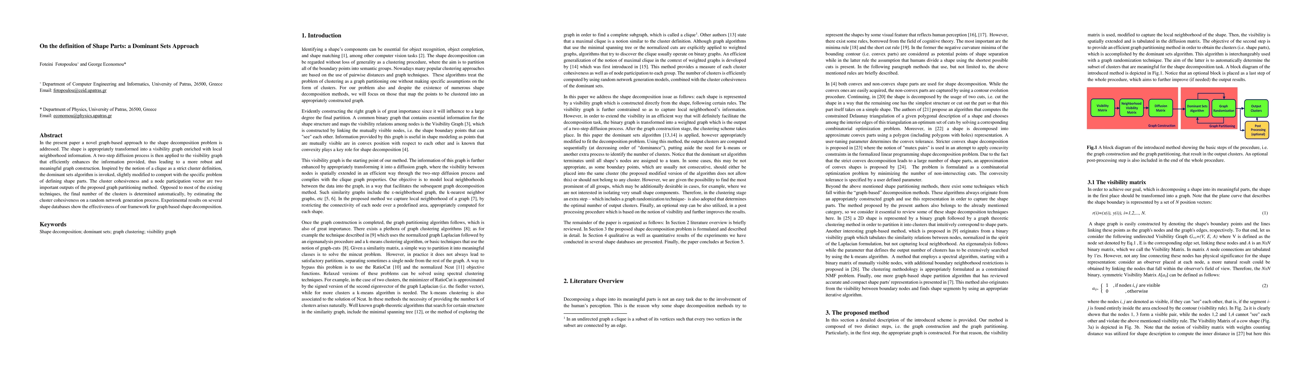 In the present paper a novel graph-based approach to the shape decomposition problem is addressed. The shape is appropriately transformed into a visibility graph enriched with local neighborhood information. A two-step diffusion process is then applied to the visibility graph that efficiently enhances the information provided, thus leading to a more robust and meaningful graph construction. Inspired by the notion of a clique as a strict cluster definition, the dominant sets algorithm is invoked, slightly modified to comport with the specific problem of defining shape parts. The cluster cohesiveness and a node participation vector are two important outputs of the proposed graph partitioning method. Opposed to most of the existing techniques, the final number of the clusters is determined automatically, by estimating the cluster cohesiveness on a random network generation process. Experimental results on several shape databases show the effectiveness of our framework for graph based shape decomposition.
