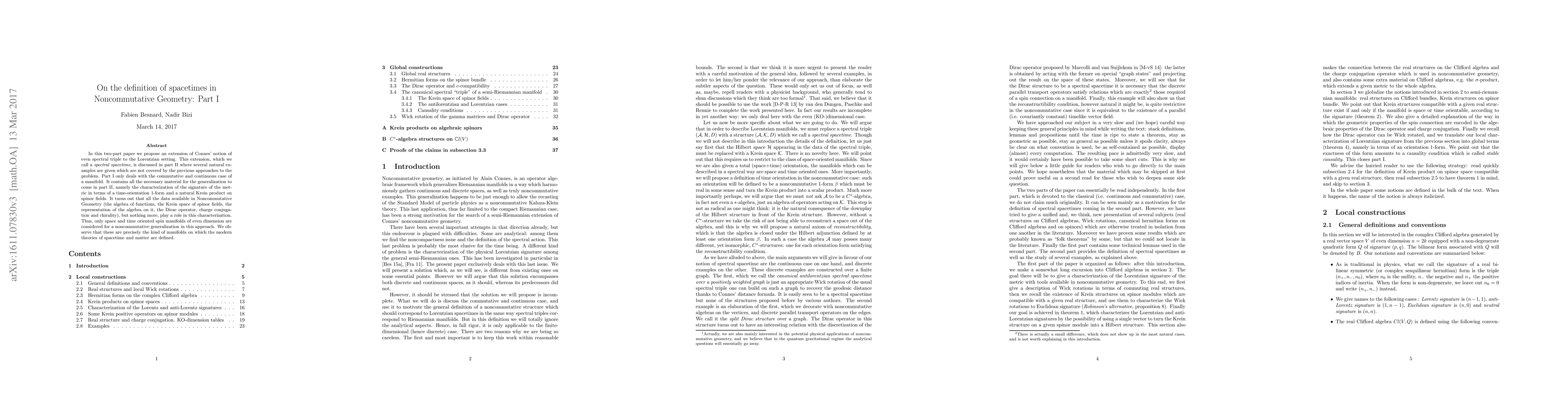 Researchers propose an extension of Connes' spectral triple to Lorentzian settings, focusing on even-dimensional manifolds with time-orientation, and explore the characterization of spacetime signatures in noncommutative geometry.