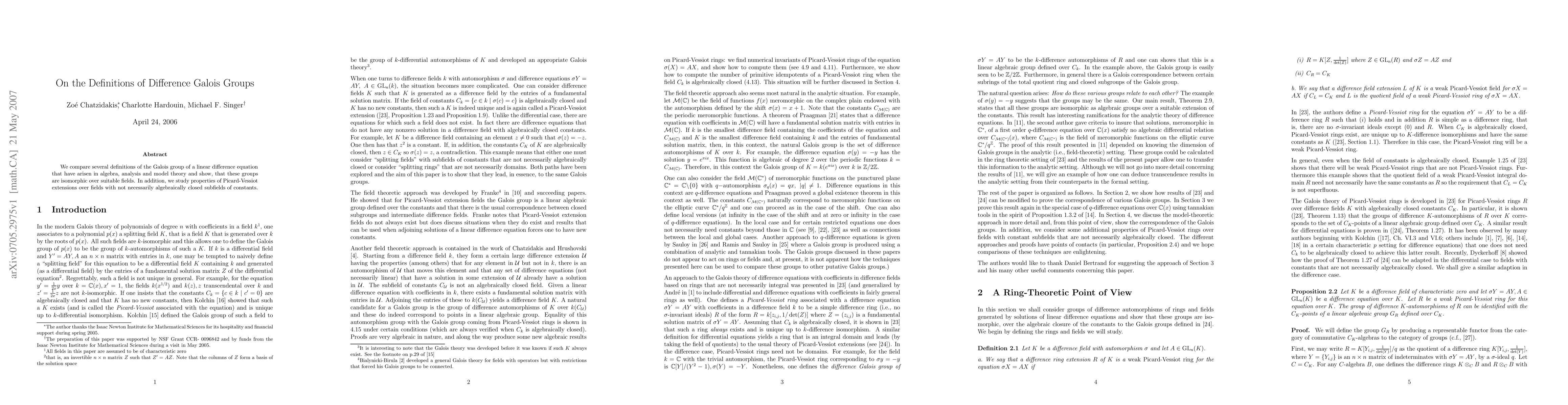 We compare several definitions of the Galois group of a linear difference equation that have arisen in algebra, analysis and model theory and show, that these groups are isomorphic over suitable fields. In addition, we study properties of Picard-Vessiot extensions over fields with not necessarily algebraically closed subfields of constants.