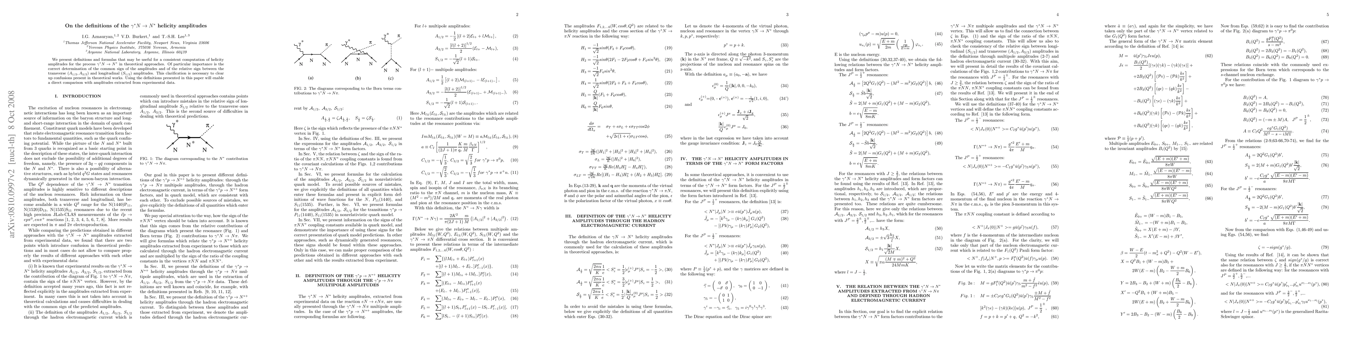 We present definitions and formulas that may be useful for a consistent computation of helicity amplitudes for the process gamma* N -> N* in theoretical approaches. Of particular importance is the correct determination of the common sign of the amplitudes and of the relative sign between the transverse (A12,A32) and longitudinal (S12) amplitudes. This clarification is necessary to clear up confusions present in theoretical works. Using the definitions presented in this paper will enable a direct comparison with amplitudes extracted from experimental data.