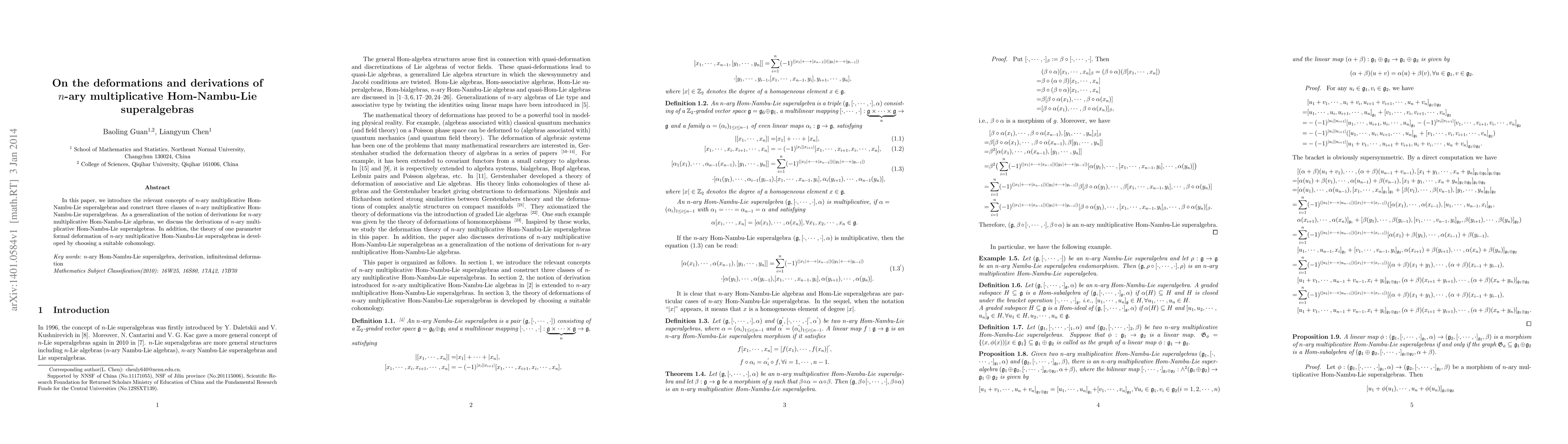 This paper introduces $n$-ary multiplicative Hom-Nambu-Lie superalgebras, constructs three classes, and develops the theory of their derivations and one-parameter formal deformations through a specific cohomology framework.